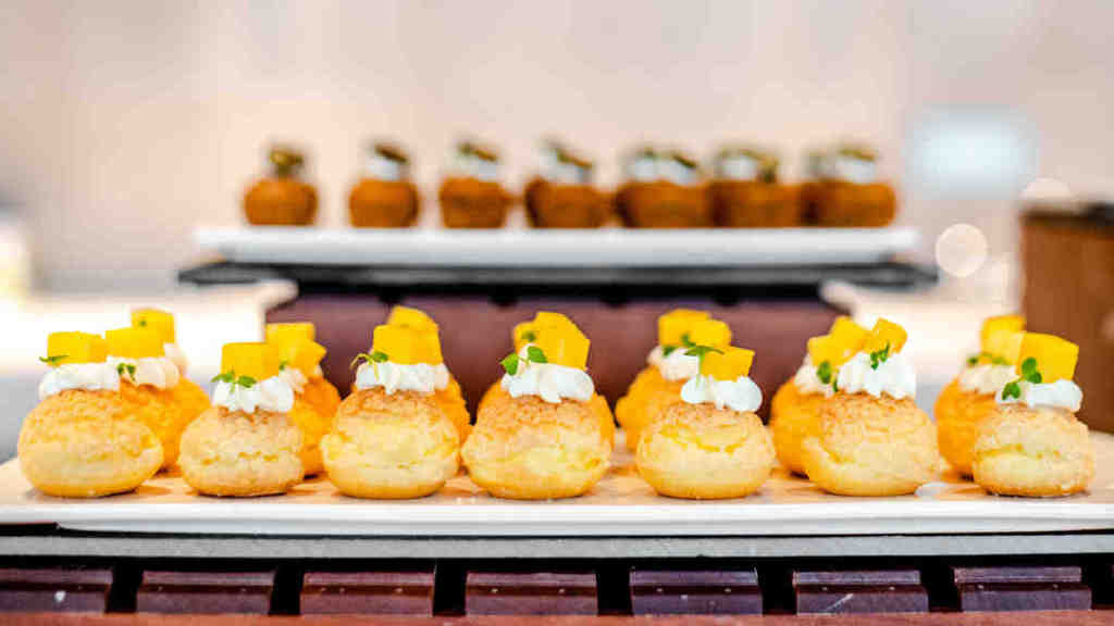 老少咸宜的甜品套组不仅味道好,颜值也是非常高。胡萝卜慕斯、白兔蛋糕、黑芝麻蛋糕、提拉米苏……应有尽有。咸点也是毫不含糊,低温慢煮扇贝、黑松露鸡蛋卷、阿拉斯加蟹肉……也是琳琅满目。