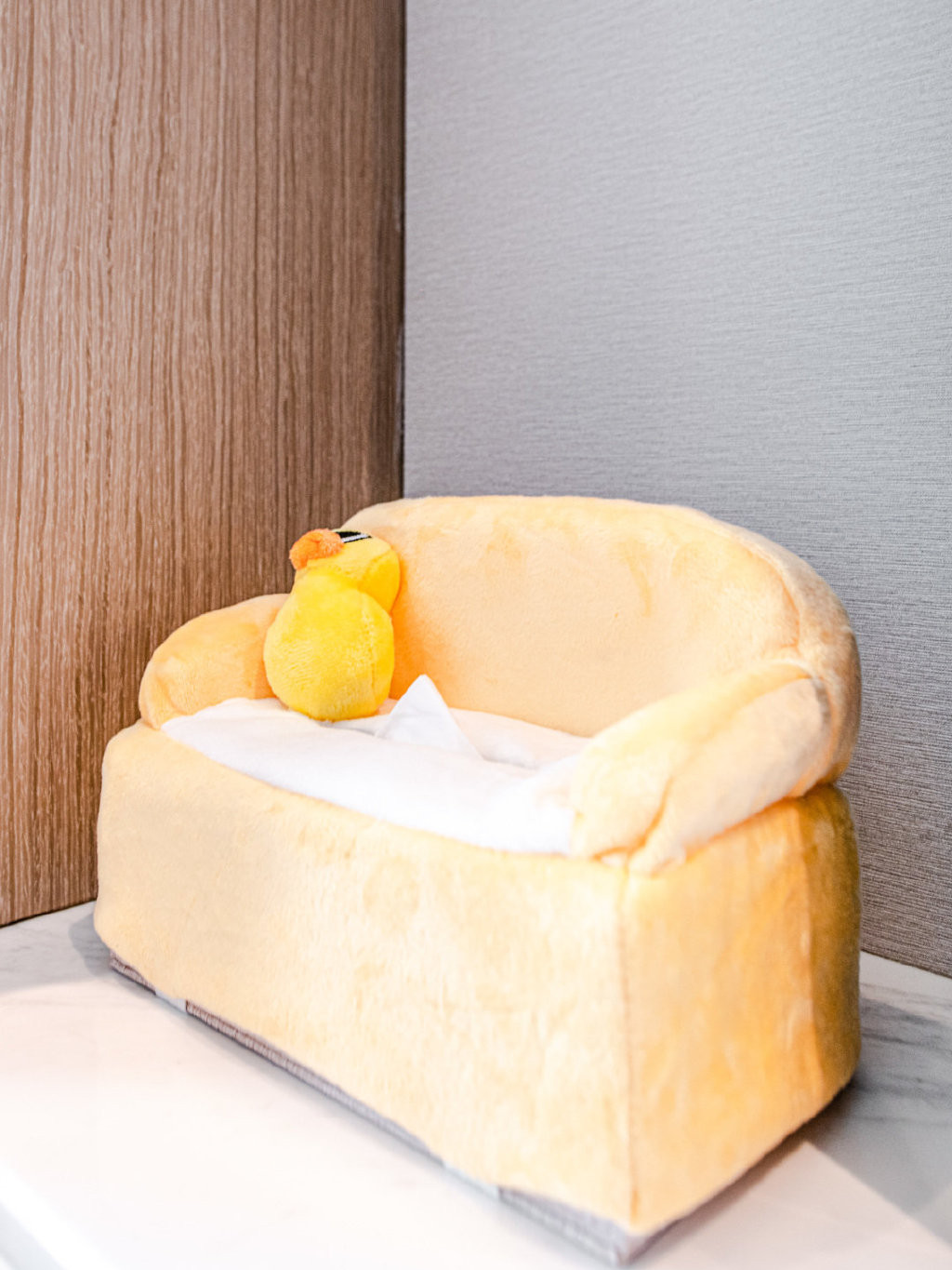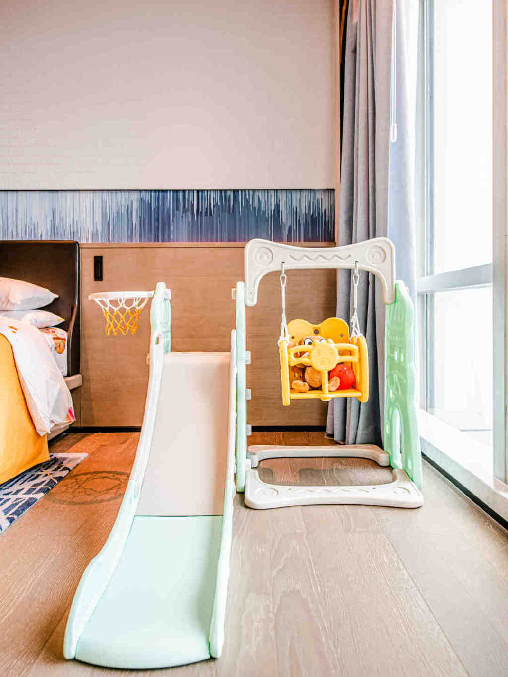 还有小黄鸭纸巾包、室内玩乐滑梯和各种专门给小朋友预备的洗漱装备都有,属实齐全。