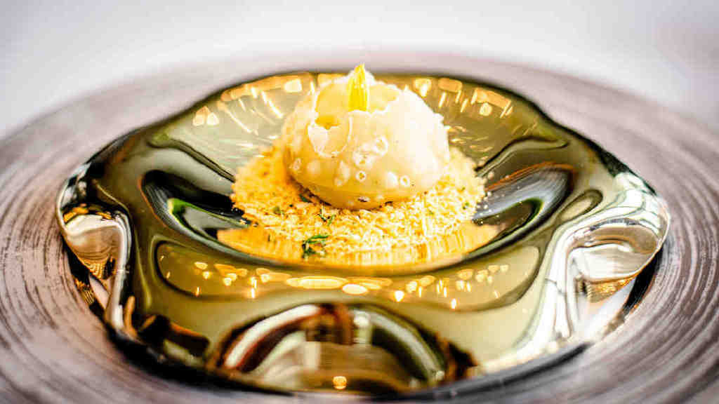 不过末了还是要再多赞一句主食和甜品。龙虾汤黑松露拌稻庭面,味道喷香、面口感爽利、汤汁浓郁,让我一试难忘,而这道名为岭南白玉妃子笑的甜品解腻去滞,真心是这顿大餐最好的收尾。