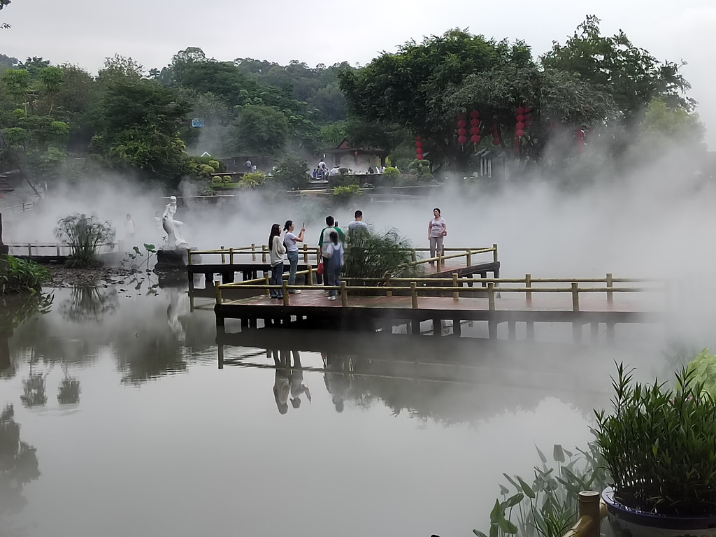“莲花仙境”:莲花仙子,云雾笼罩,湖面如镜,莲花盛开,人间仙境。