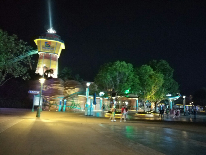 海洋王国大门就在企鹅酒店旁 0距离 这是夜景 晚20点 有烟火表演(转天看)