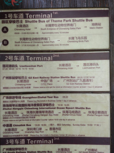 7点从家出发去机场 11.50到珠海机场 后 在机场2楼简单吃了中午饭 (珠海机场2楼有好多快餐 简餐 等等)就在一楼出站口最右上角机场巴士(非常好找)购买机场到珠海长隆各酒店的 巴士票