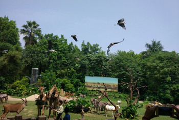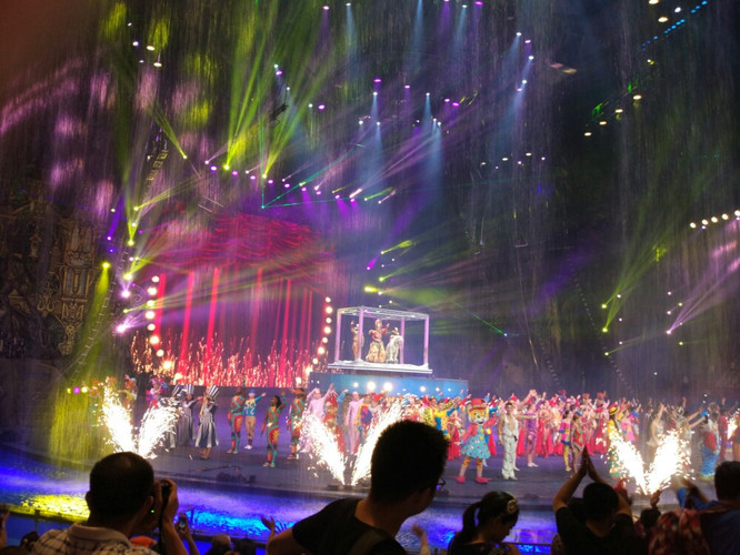 第二天 简单吃些早点 带上背包零食水 开始一天的长隆海洋王国之旅 门票是2日票 不限次数2日内随意进出 每人要录指纹的 (住酒店有优先进入的权利 淡季也无所谓)9.30可以入场照相 10点正式开始 海洋王国我就不介绍了 看照片吧 每天有好多场次的表演 别错过时间 合理安排好时间 一天内都能看过来 下有个表演时间的照片