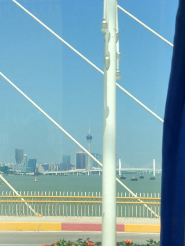 1个多小时的车程 一个大桥上能看到澳门 (机场到企鹅酒店距离不近50多公里 车里就6个人 3个在横琴口岸下车了 就剩下我们3人等于包车了😄)