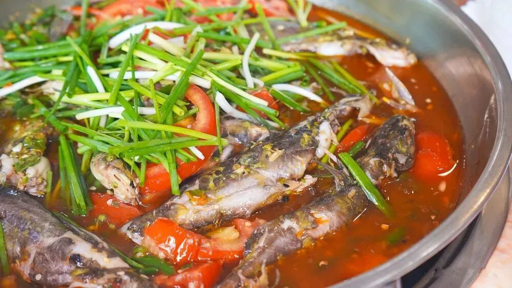 断桥青椒河鱼是采用新鲜河鱼宰杀洗净,用秘制的酸、西红柿和本地辣椒进行翻炒,慢炖。品尝一口便会尝到酸汤的鲜美,加上青椒的麻香,配上断桥当地柴火手搓糊辣椒秘制的蘸水,独树一帜。
