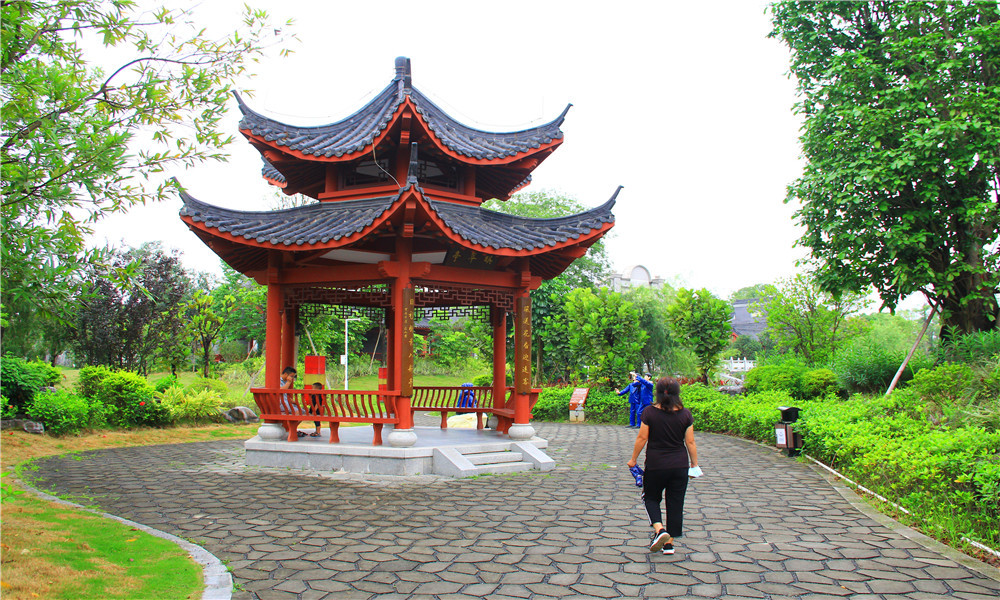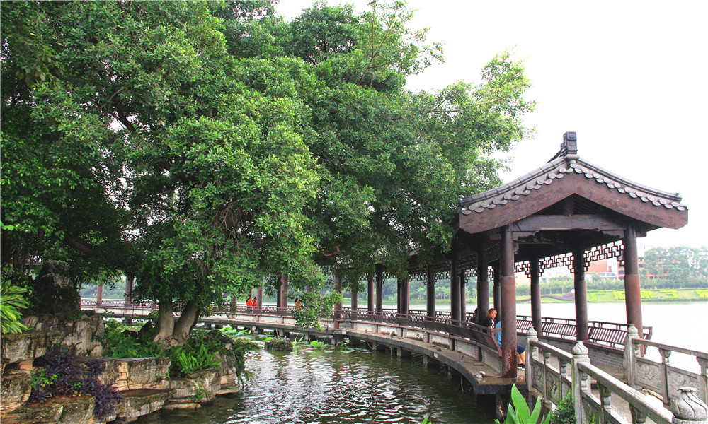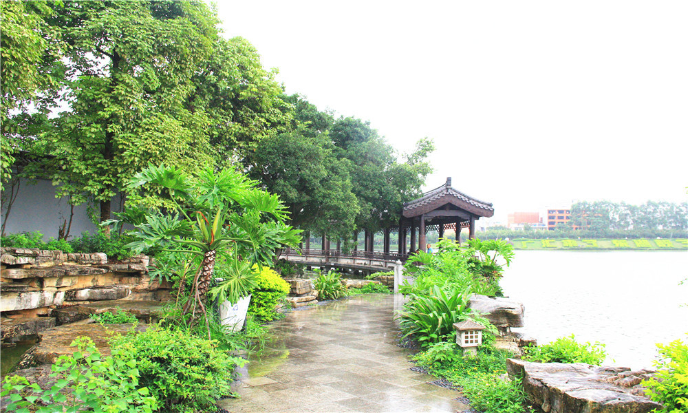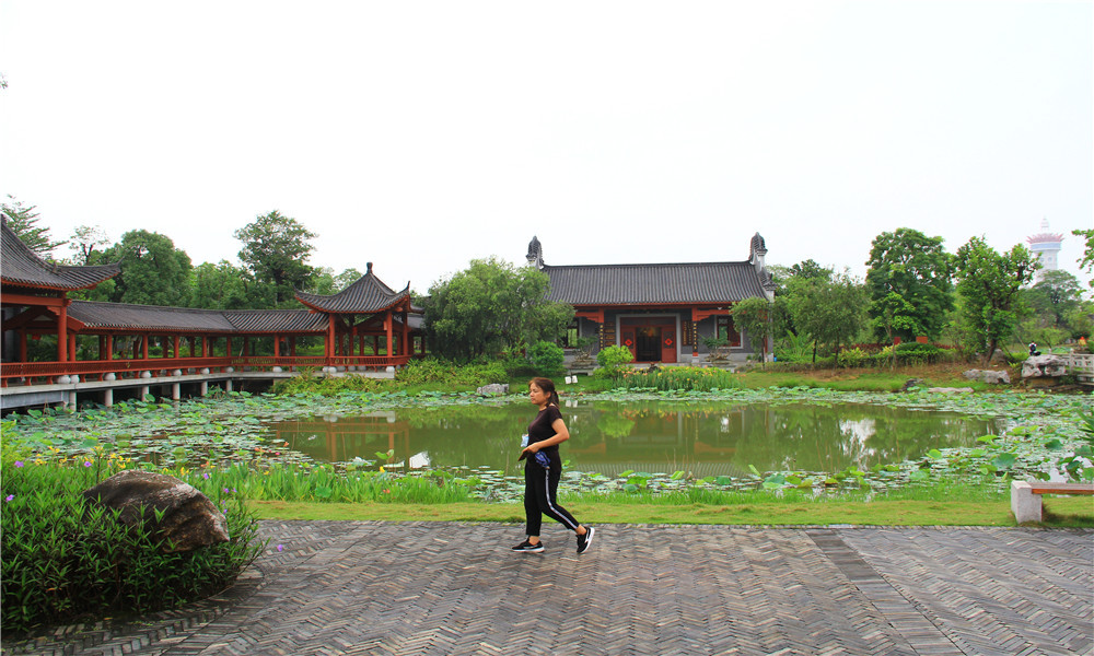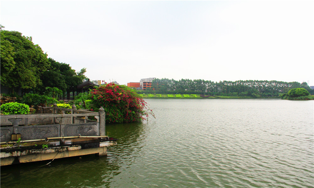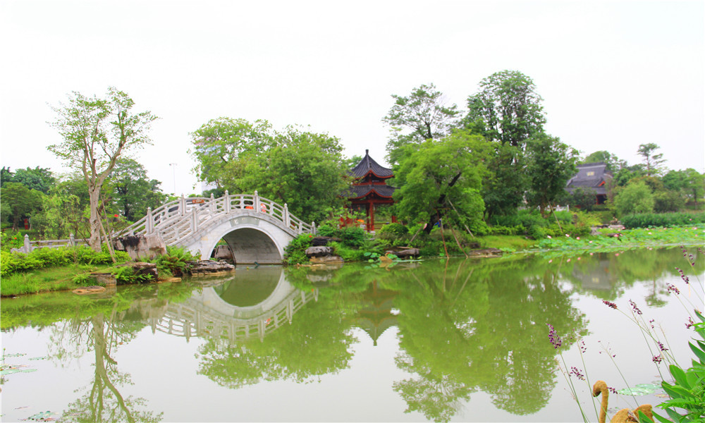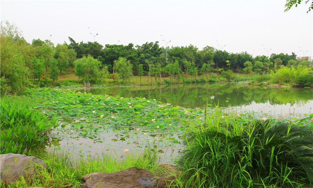 贵港市马草江公园的另一个亮色是水体。经过把流经公园内的马草江、马尾江两条江进行改造,园内建设有东南西北四个荷塘以及龙湖、镜湖和石湖三个湖。