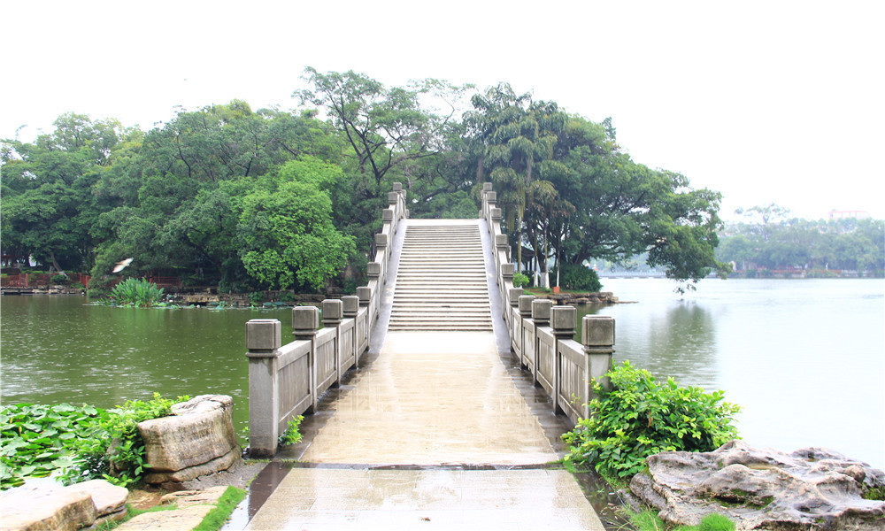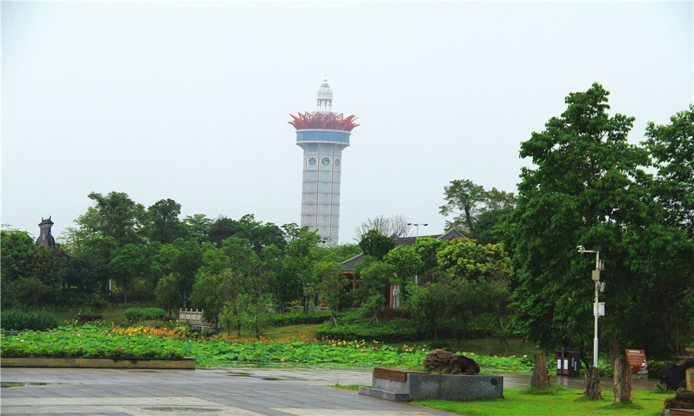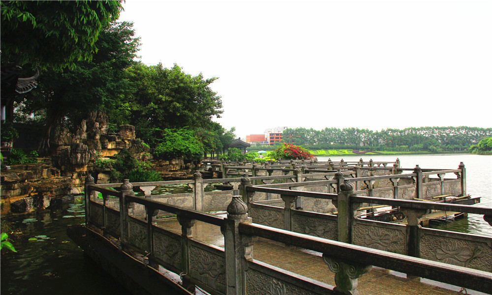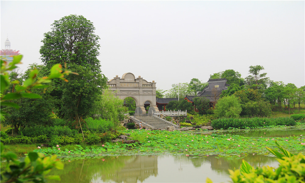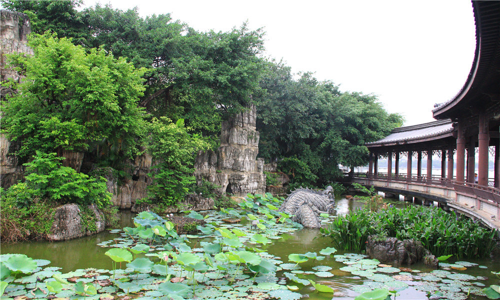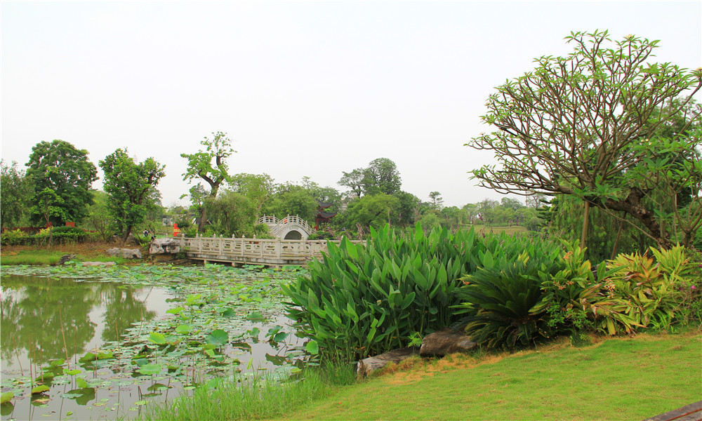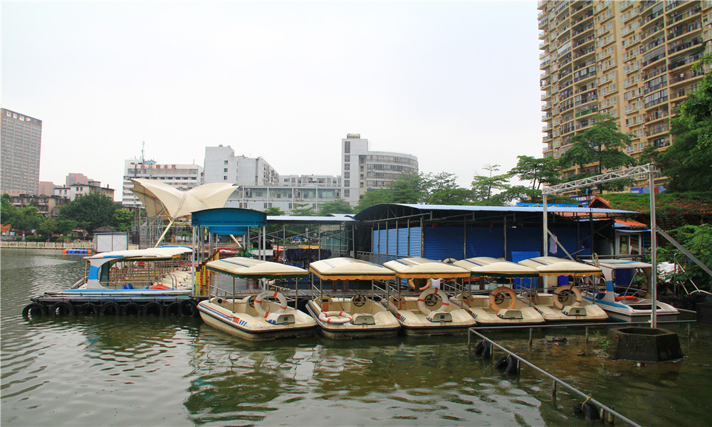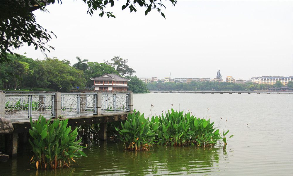 贵港市马草江公园的另一个亮色是水体。经过把流经公园内的马草江、马尾江两条江进行改造,园内建设有东南西北四个荷塘以及龙湖、镜湖和石湖三个湖。