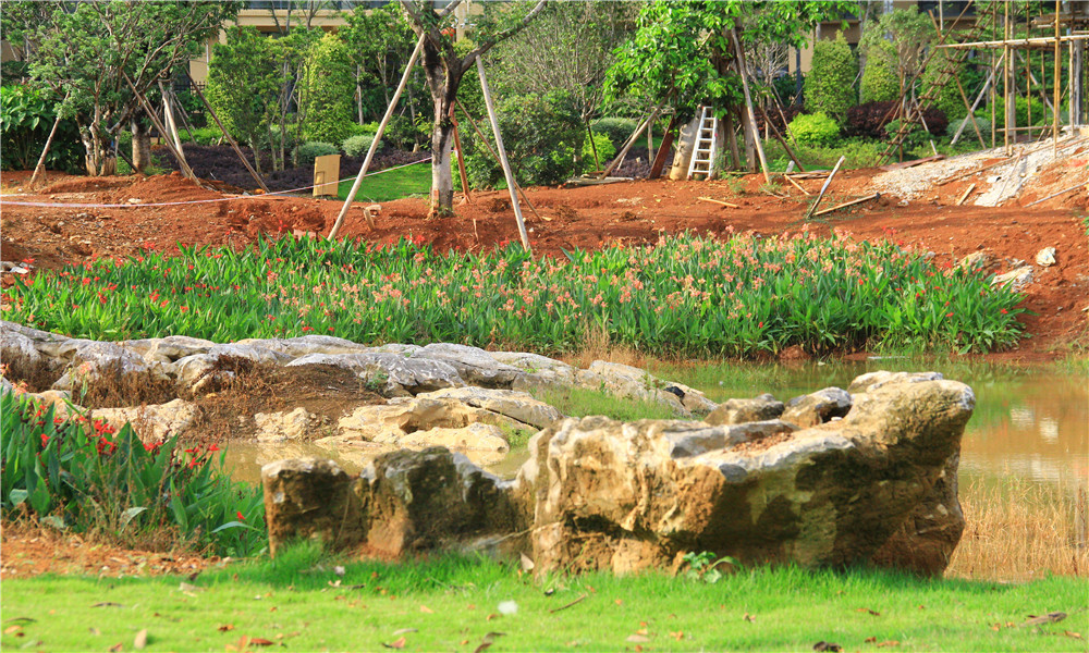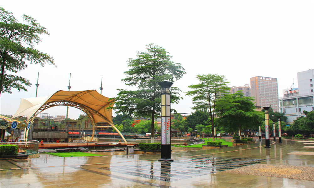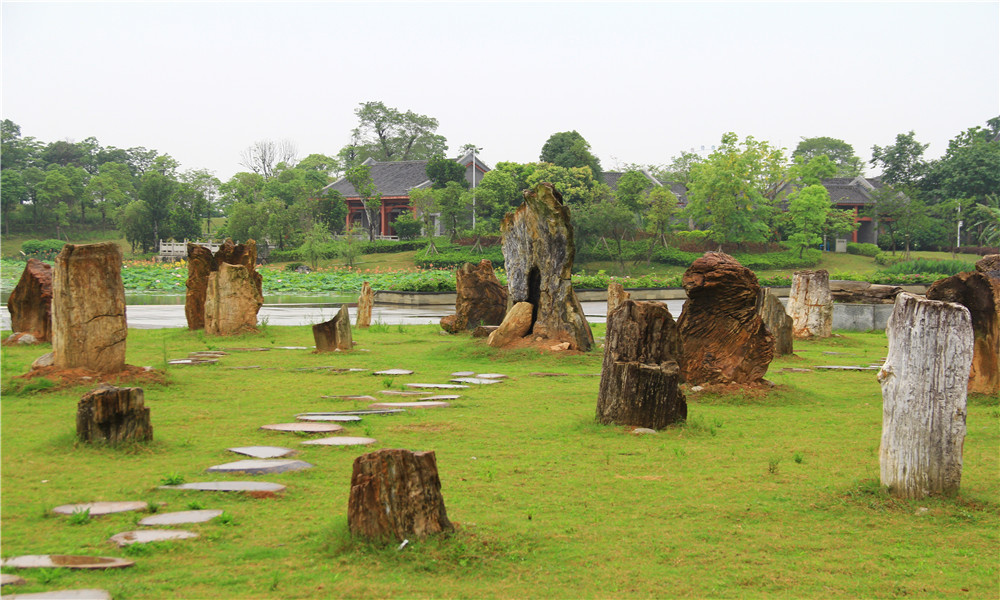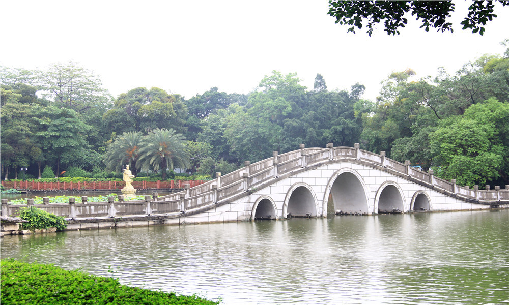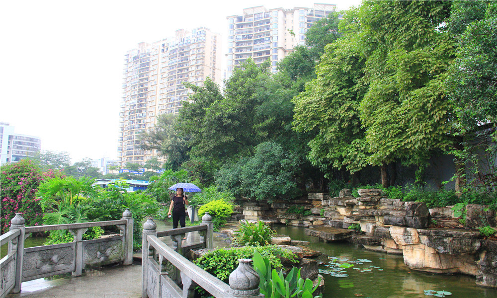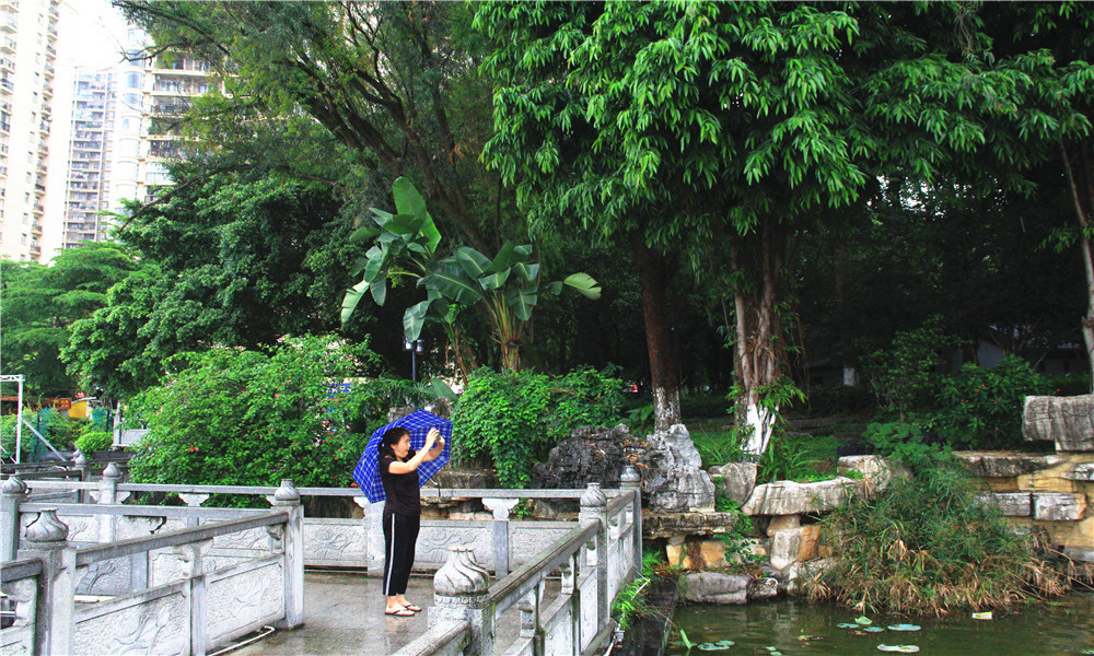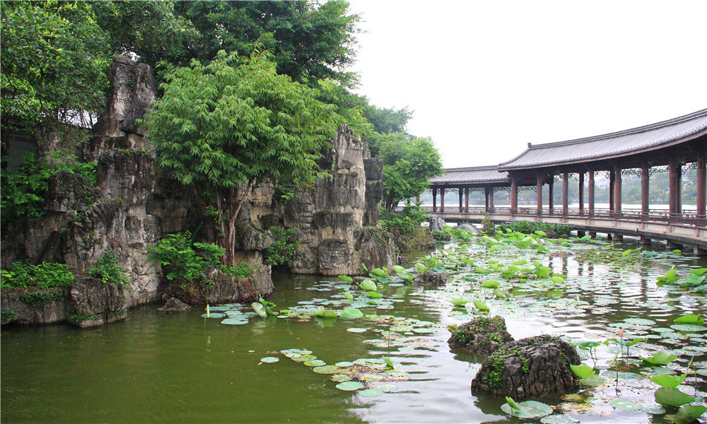 贵港市马草江公园的另一个亮色是水体。经过把流经公园内的马草江、马尾江两条江进行改造,园内建设有东南西北四个荷塘以及龙湖、镜湖和石湖三个湖。