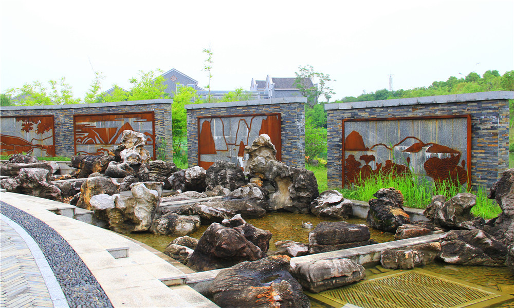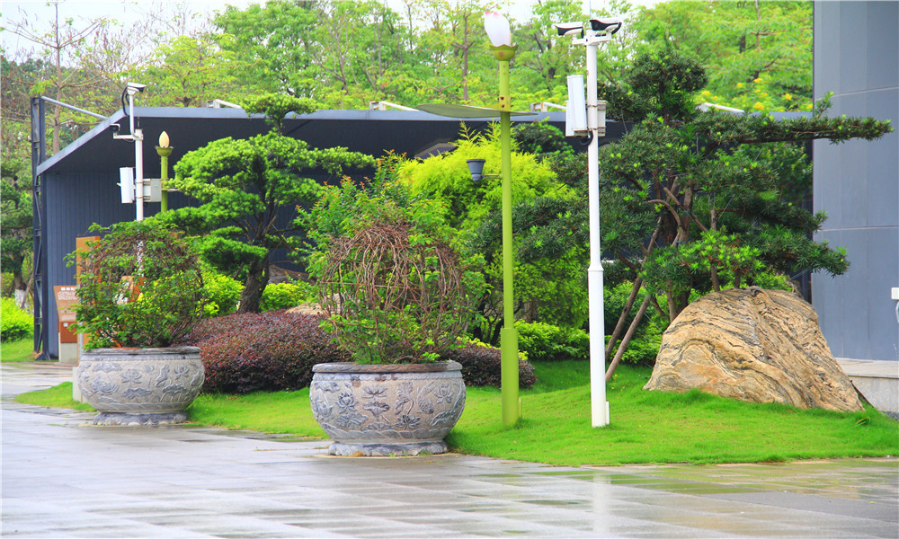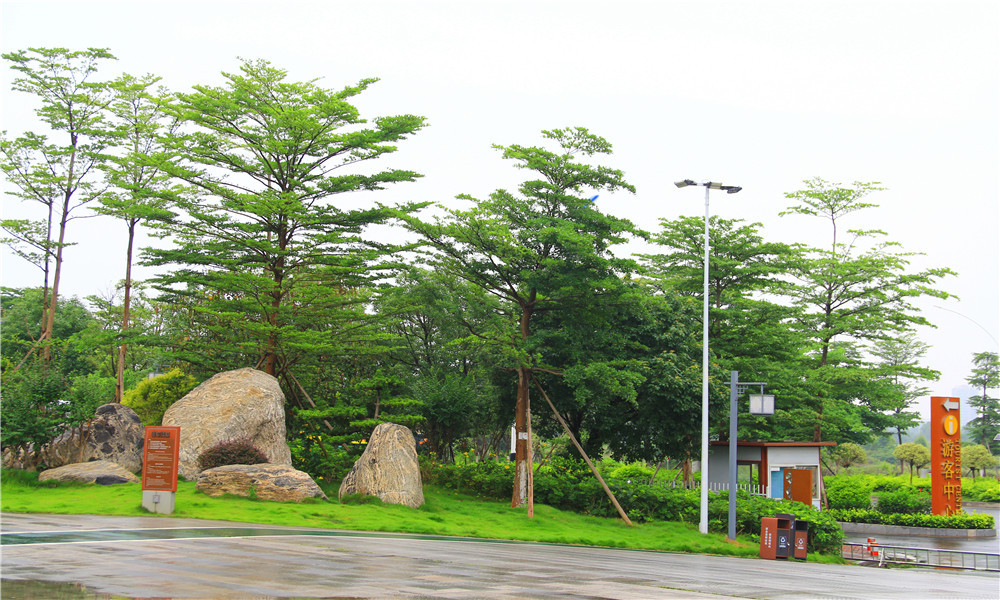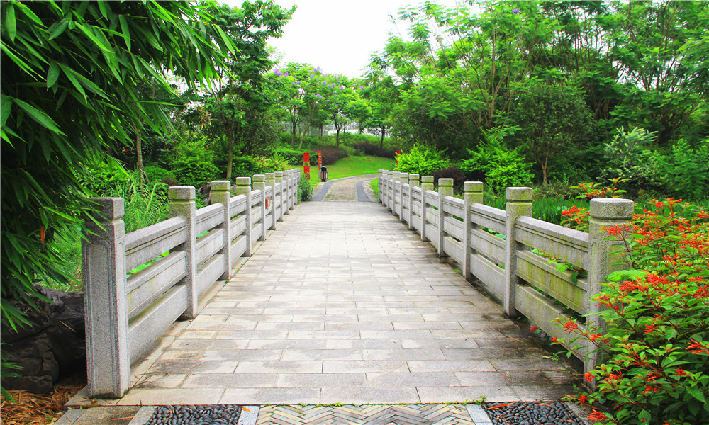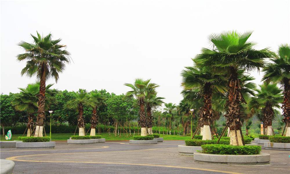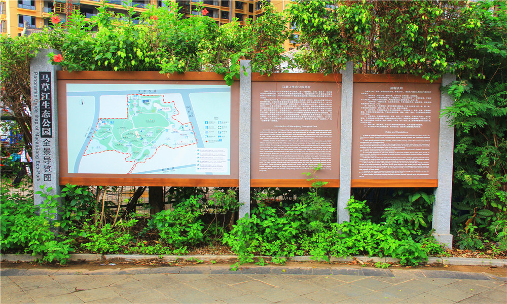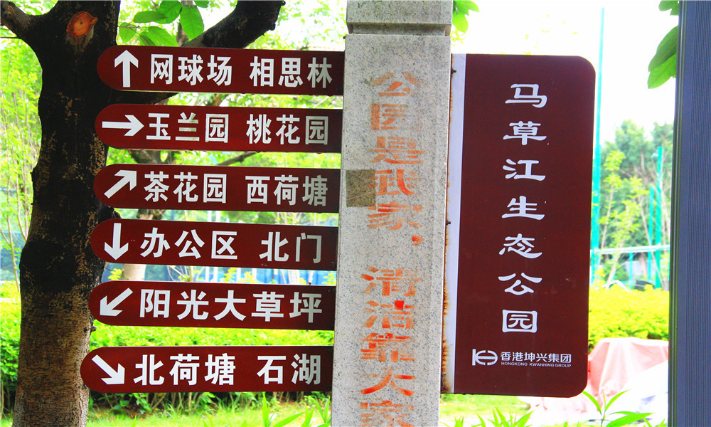 贵港市马草江公园总体布局概括为:三门两桥十里路,五场一坪十座园,两江四塘三大湖。公园内绿化面积达416亩,绿地面积占园区总面积的80%以上。