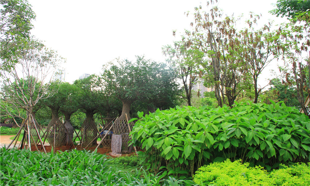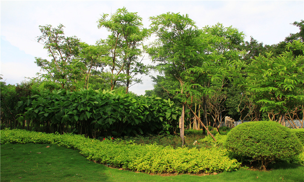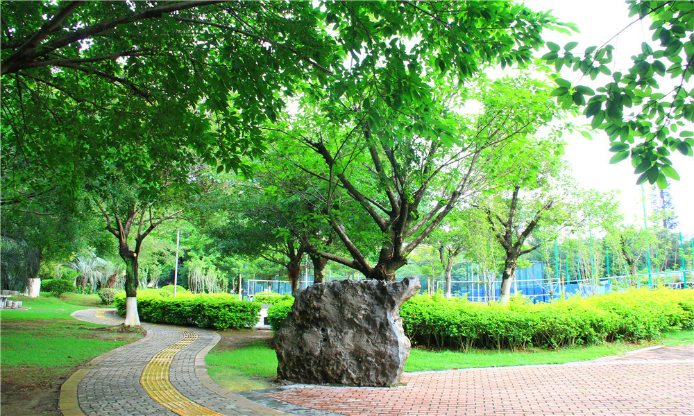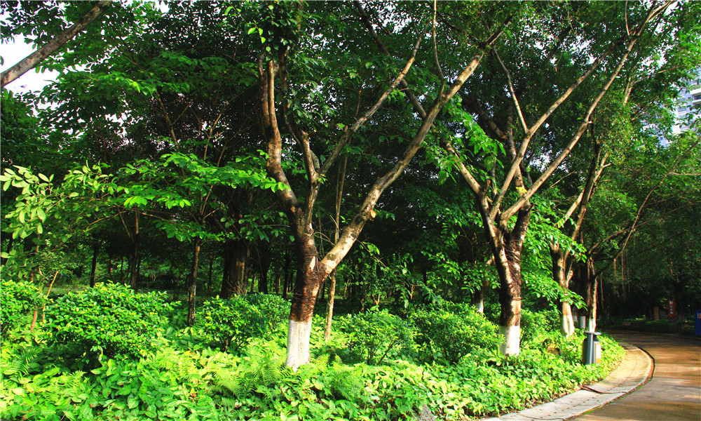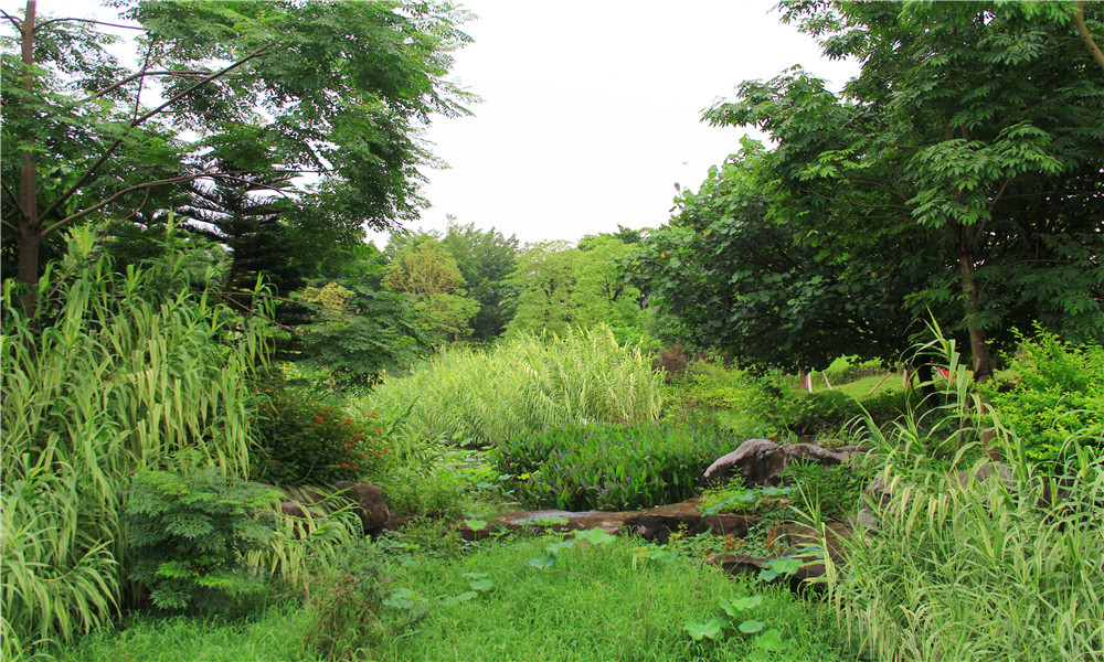 贵港市马草江公园内绿化面积达416亩,绿地面积占园区总面积的80%以上。种植有近200种植物,大小灌木近10万株,地被植物近10万平方米。