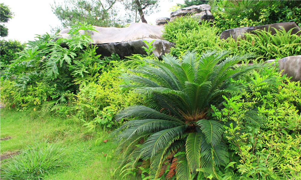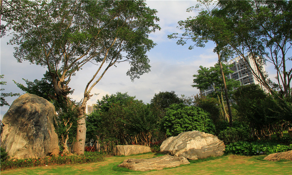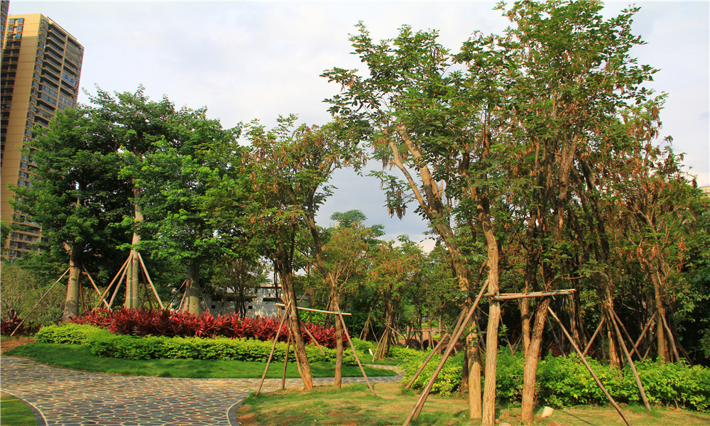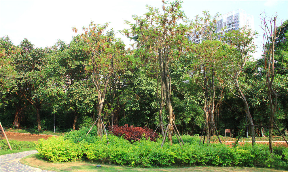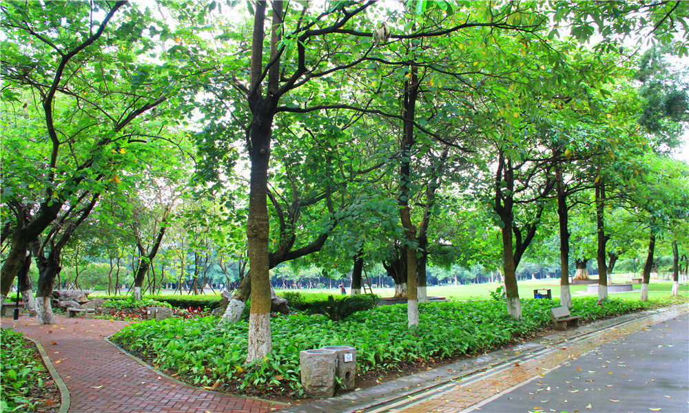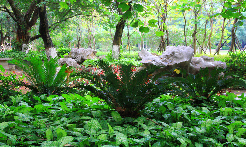 贵港市马草江公园内绿化面积达416亩,绿地面积占园区总面积的80%以上。种植有近200种植物,大小灌木近10万株,地被植物近10万平方米。
