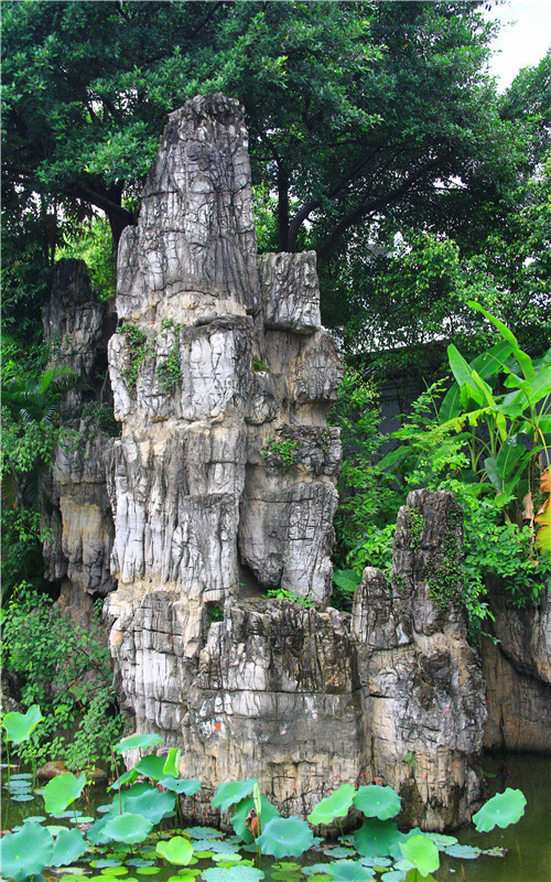 广西园林园艺博览会山水风情园区包括钦州、北海、防城港、柳州、来宾、河池和桂林7个城市展园,主要利用临湖环境,塑造山水园林,呈现广西各城市山清水秀的地理风貌和绚丽多彩的山水风情。