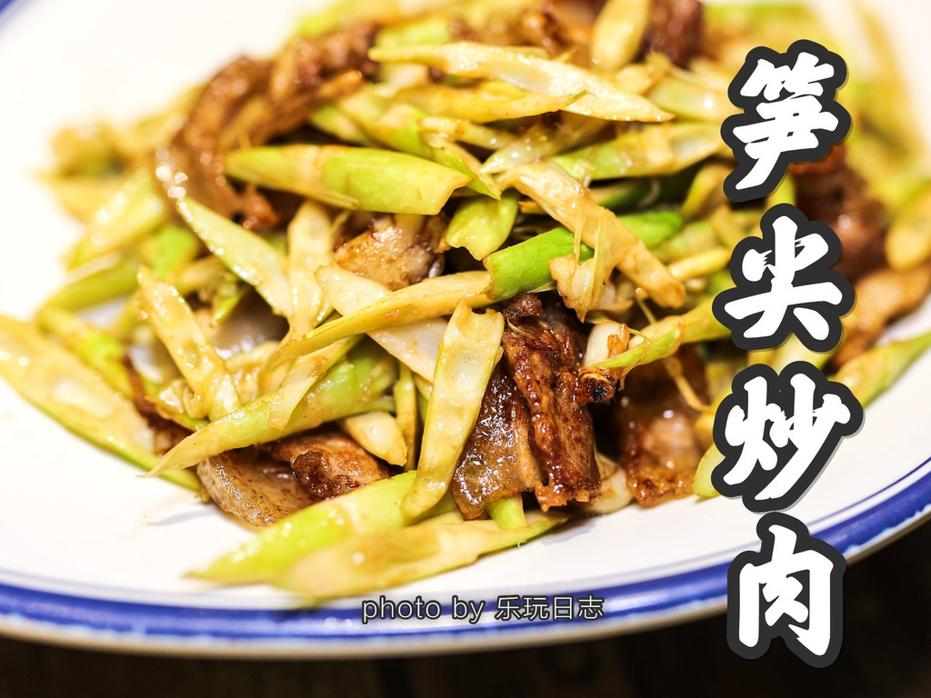 春笋作为春天的“菜王”食法很多,可谓“荤素百搭”、 阳朔 最经典一种做法,就是【 笋尖炒肉 】春笋的鲜,与肉的香搭配相得益彰,香味诱人。