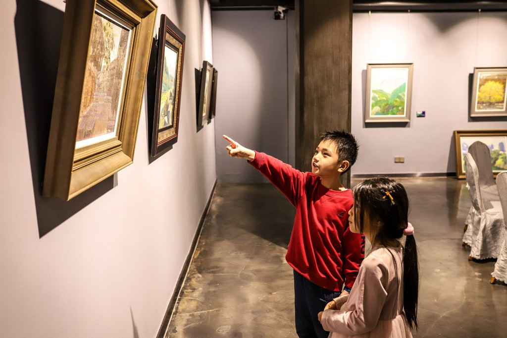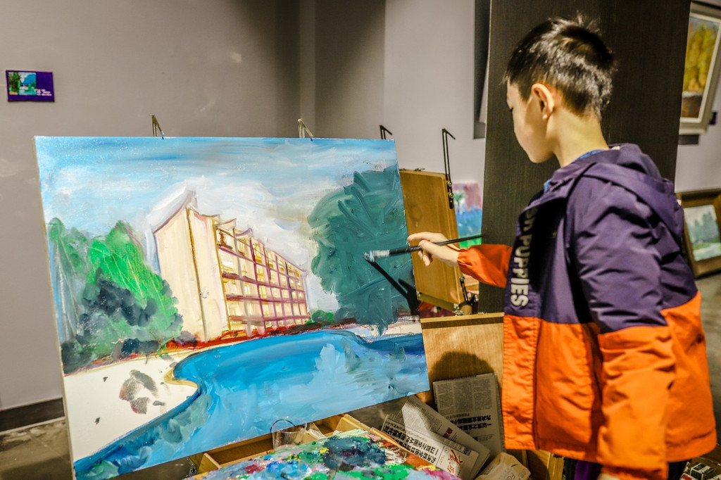 绘画写生成为家长带孩子过度假的一种新方式。小朋友可以在此欣赏和学习油画的知识。