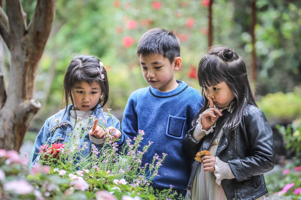 吃过营养丰富的早餐后,轩轩便和他的小伙伴们一起在花园内寻找最美的春色。