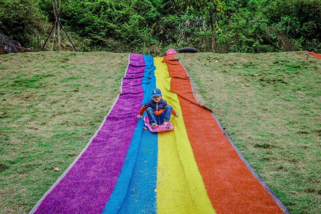 滑草在一个彩虹滑道内进行,小孩觉得比较有意思。