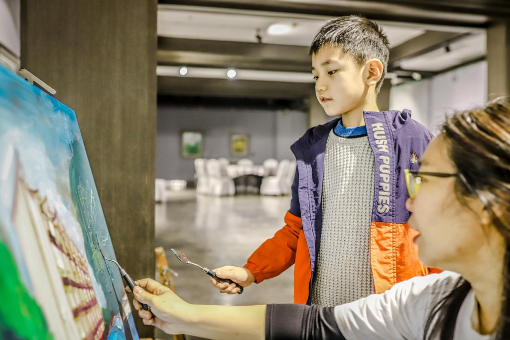 培养小孩动手能力,跟着老师一起学习油画的创作和绘画。