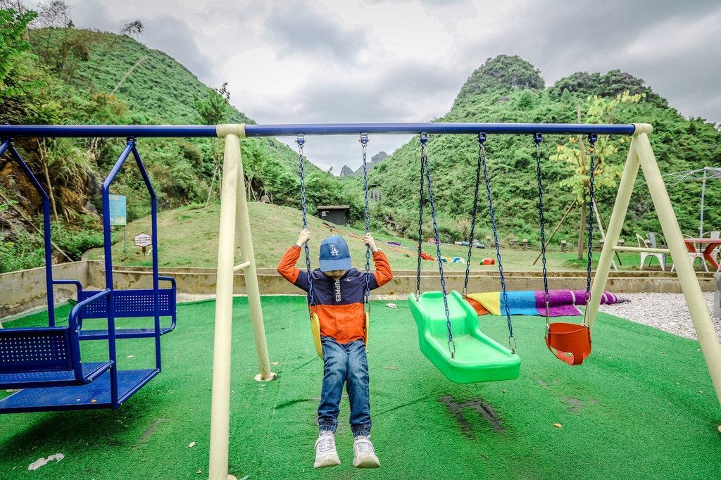 湖边亲子游玩的项目还有滑滑梯、荡秋千、跷跷板。享受美景的同时还可玩游戏。