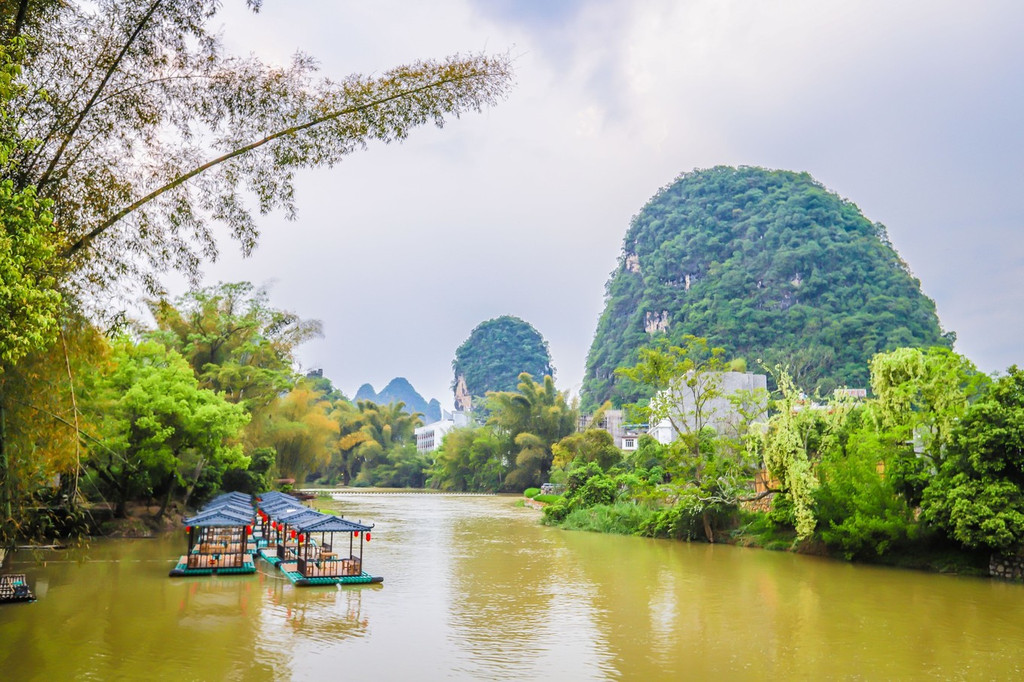 金宝河边“榕荫古渡”曾是电影《刘三姐》的取景地,刘三姐和阿牛哥在这里谈情说爱、情定终身。