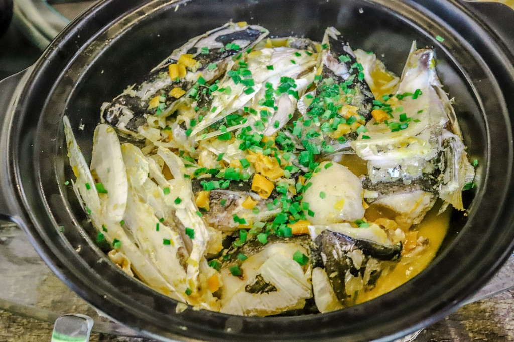 砂锅鱼头煲,鱼香四溢,入口微辣嫩滑鲜甜,口感很棒。