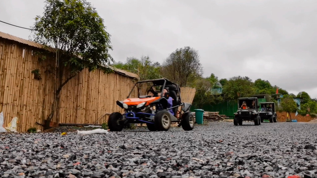 每辆越野车可载二人,轮换着开,驰骋在平坦的河滩或崎岖不平的乡间小道,各式各样惊险刺激,更令人有欲罢不能的感觉!
