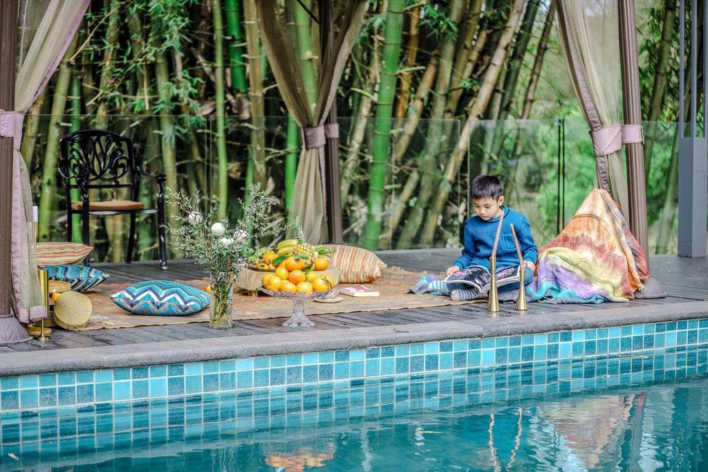 坐在泳池边,看看杂志,品尝着时令的水果和精致的点心,又度过了开心的一天。