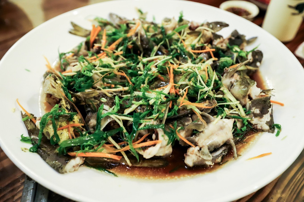 上桌时,野生的黑乌鱼已经被厨师切成薄片摆放上碟。
