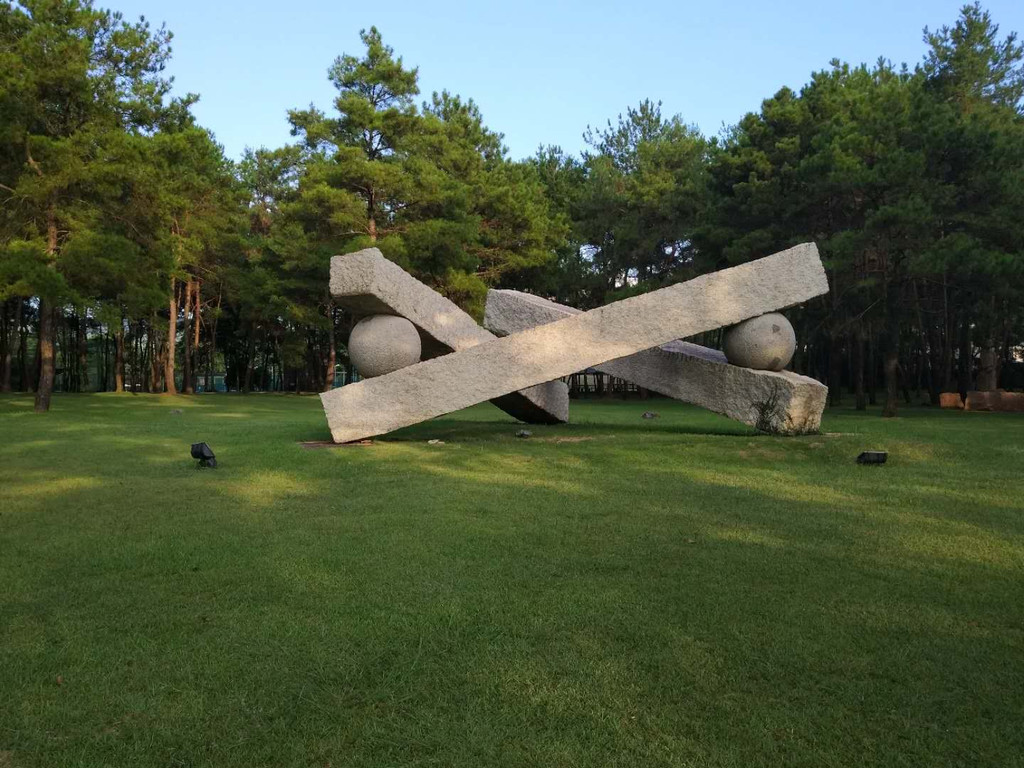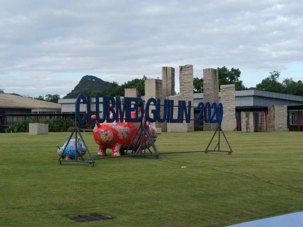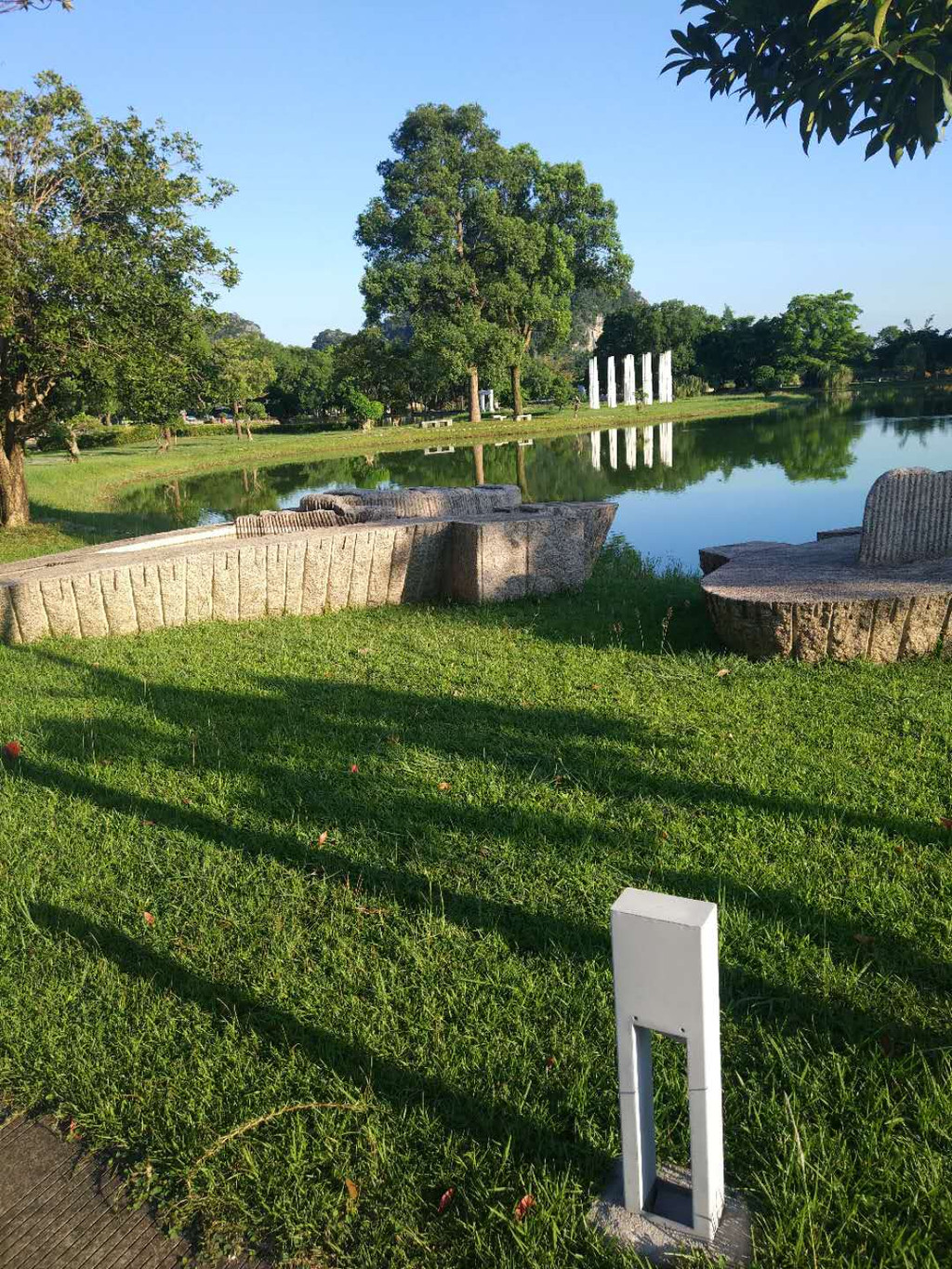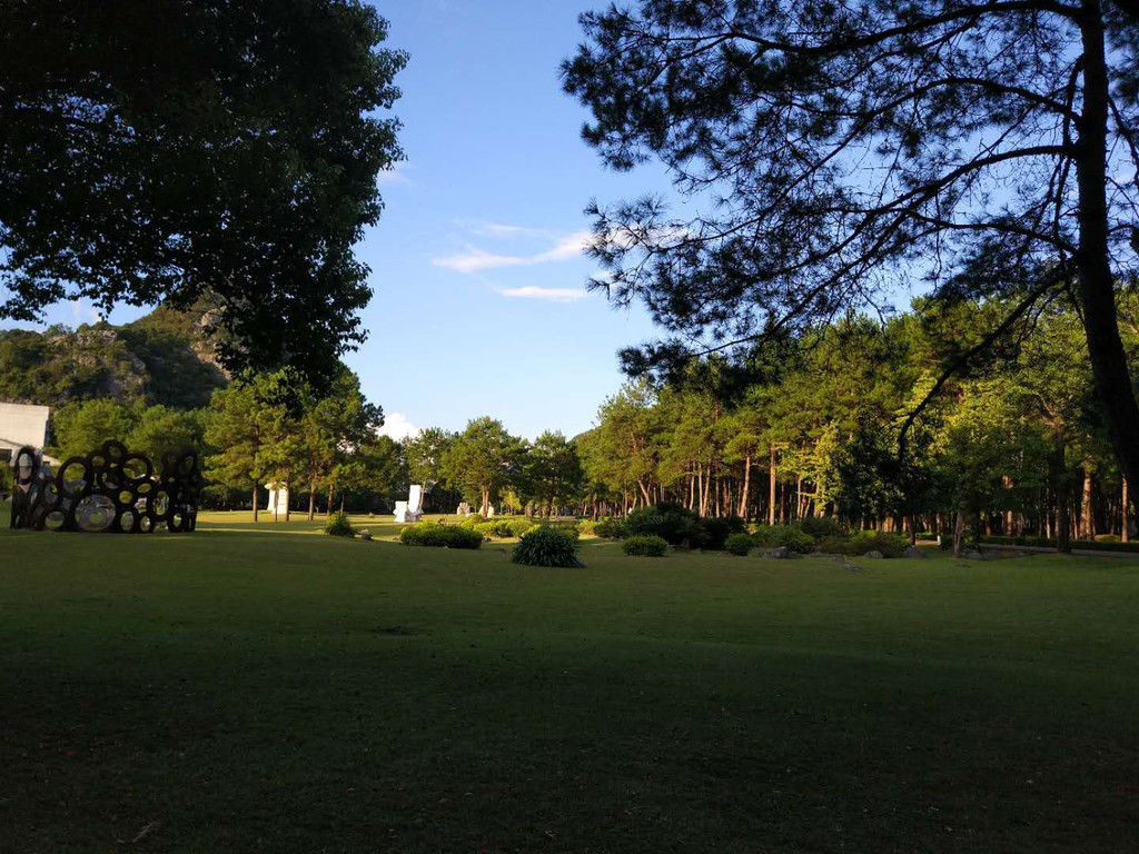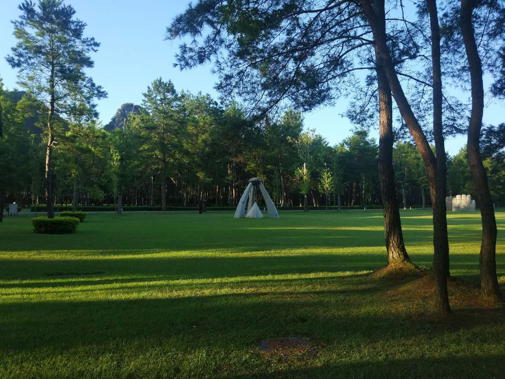 Club Med桂林度假村是一座挺棒的度假村。它占地800多亩,四周被群山环抱。这里有大块的草坪,草坪碧绿平整;有茂密的树林,树林的松树枝繁叶茂;有大大小小的河塘,河水碧波荡漾。度假村的格局很现代,客房大堂餐厅茶座布置都很摩登。路边,树丛,池塘,草坪间有很多现代风格的雕塑。雕塑大都是花岗岩材质,造型别致,多数是矩形球形三角形等几何块状,给游人带来无尽的想象空间。