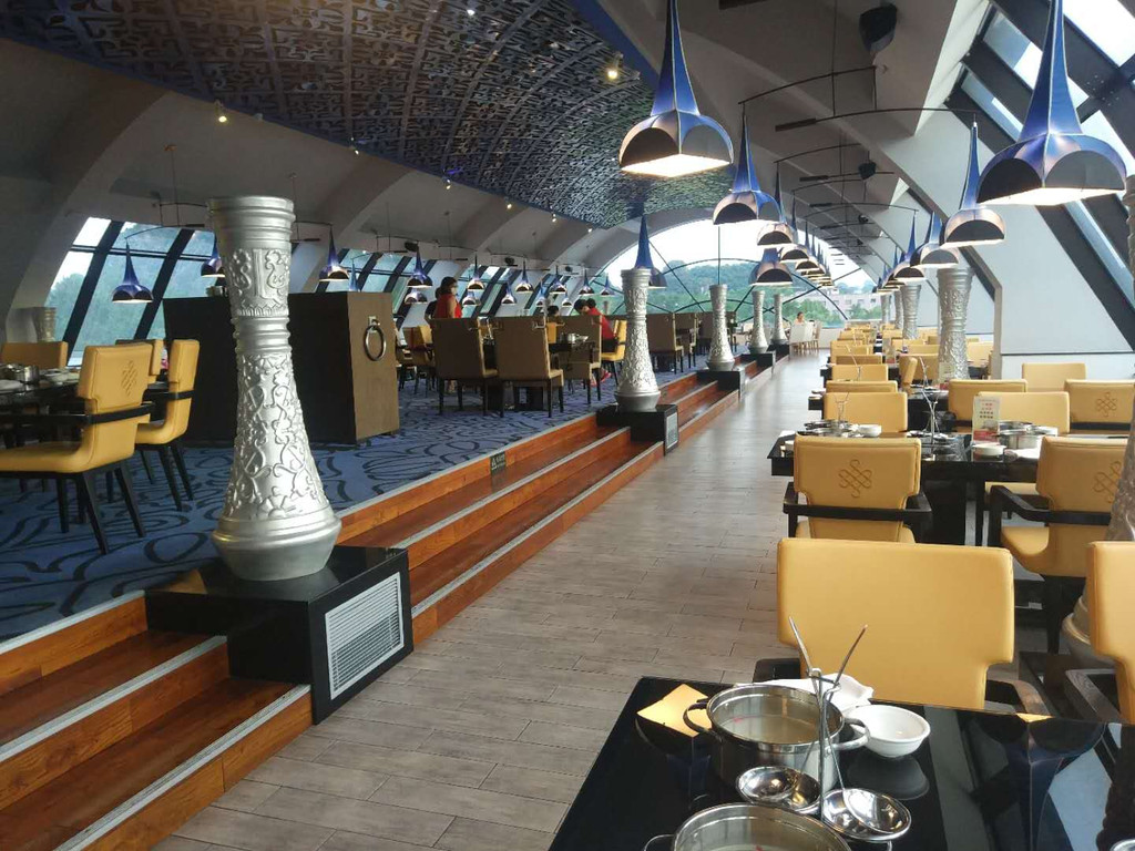 度假村的餐饮是自助餐形式,品种非常丰富,风格为中西结合,每餐还都供应葡萄酒冰淇淋等等各种饮品,大堂酒吧也不间断提供茶水,鸡尾酒。餐区卫生管理非常严格,进入取餐区域必须配带口罩,餐区工作人员时时提醒督促游客配合管理。