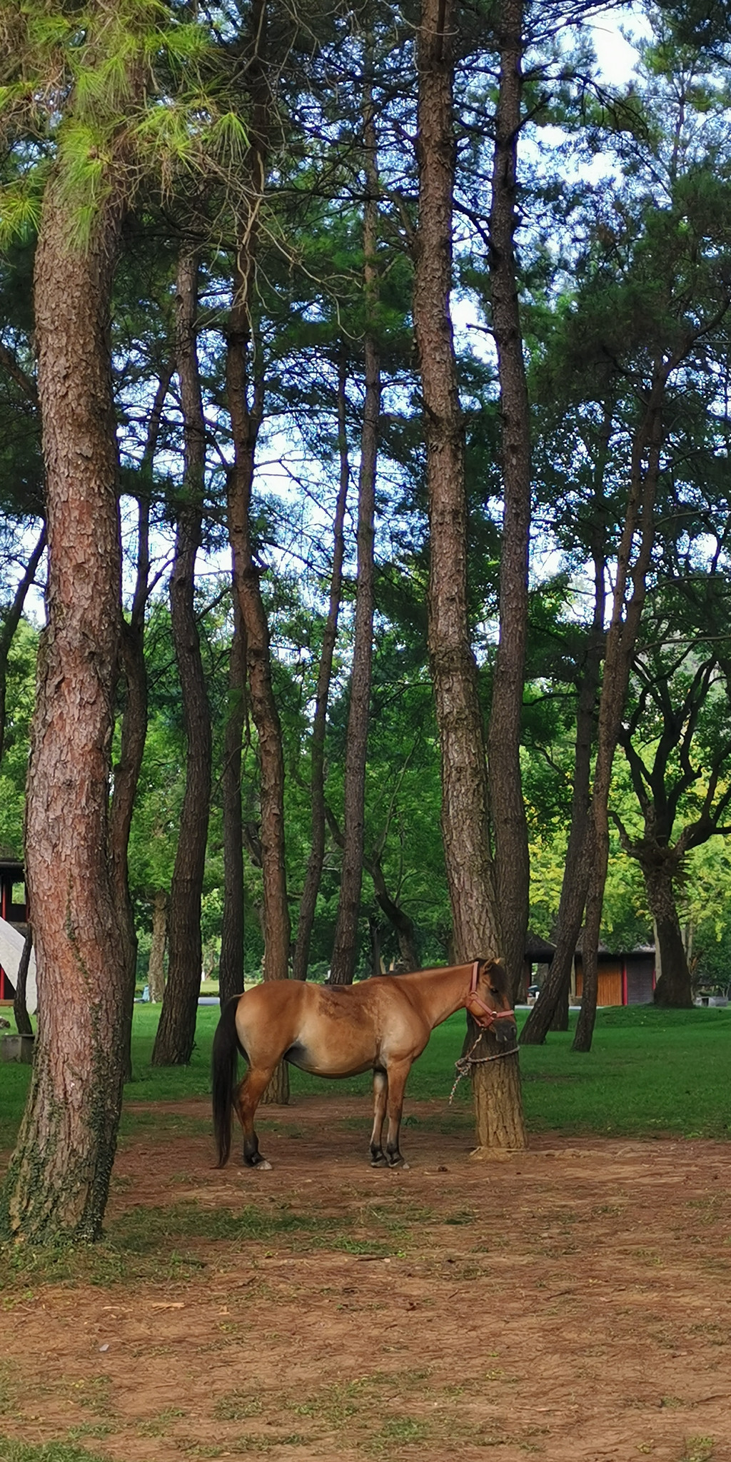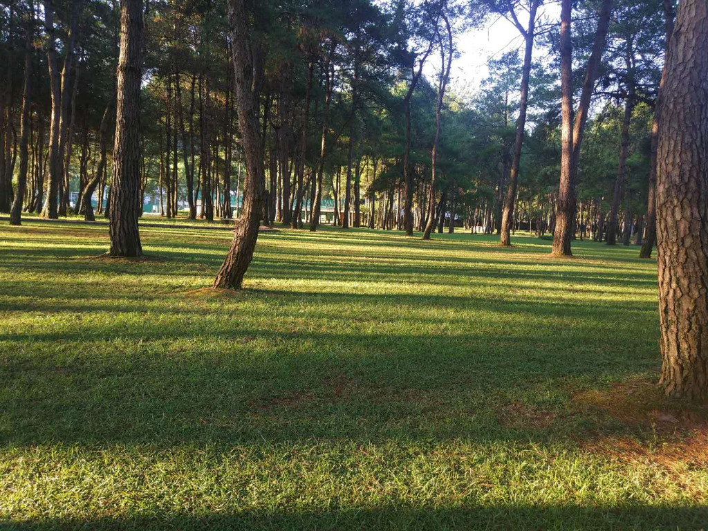 清晨时分,太阳刚刚升起,阳光还不刺眼,和煦的光线投射到大地,投射在疏疏的松林间。树影被拉得很长很长,在草坪上留下条条光影。林中早起的鸟儿在枝头跳跃,知了也在树梢上起劲地欢唱。这不仅使人想起古诗句中描写的那种“蝉噪林逾静,鸟鸣山更幽”的意境。此时度假村还没有苏醒,村中的小路上静悄悄,偶尔瞧见一两位老者在晨练。清晨的度假村沉浸在安逸自然的氛围之中。