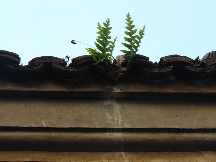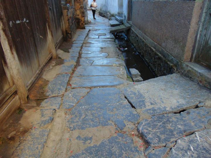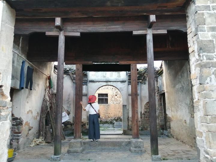从桂剧院旁边出去,都是老的砖瓦房了。月岭古民居属典型的湘南式民居,始建于明末清初。这里有很多巷道,巷道铺满了条形青石板或青砖,巷道比较窄,多数巷道处于建筑阴影之中,很多巷道中,是有排水明沟沿巷布置的,体现出村子的布局很正规、完善。