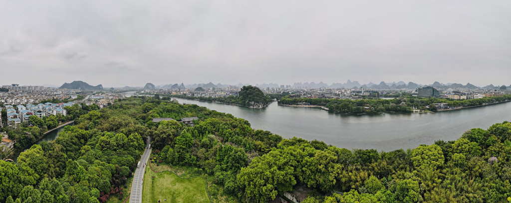 再说桂林市区。作为桂林城徽,象鼻山是肯定要去的。本来准备是用无人机近拍一下,无奈那几天风很大,不敢在江面飞,就一直想找一个更理想的观象点。加上对其他景点兴趣不大,决定市区只看象鼻山,最终去了象鼻山对面的訾洲公园。那里是观象鼻山全貌的最好位置,公园里还有很大的一块草坪,飞了无人机,虽然没有拍到象鼻特写,但拍到了桂林两江盛景,也非常好了。