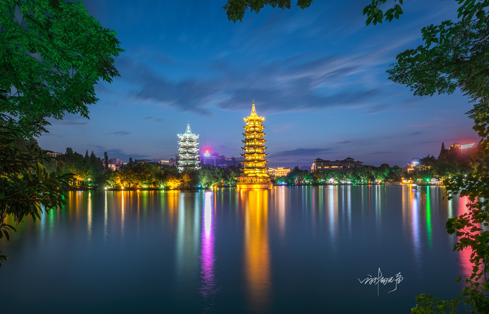 杉湖日月双塔已成为观赏桂林城市精华美景的胜地。