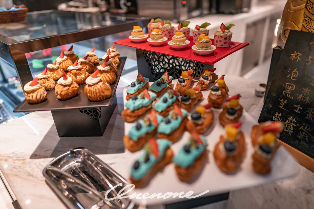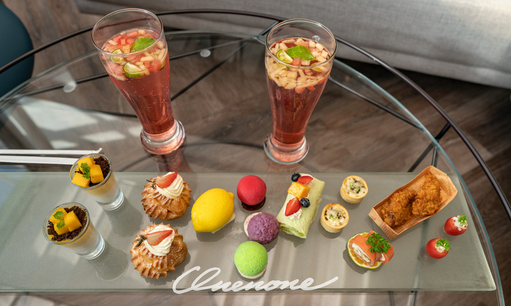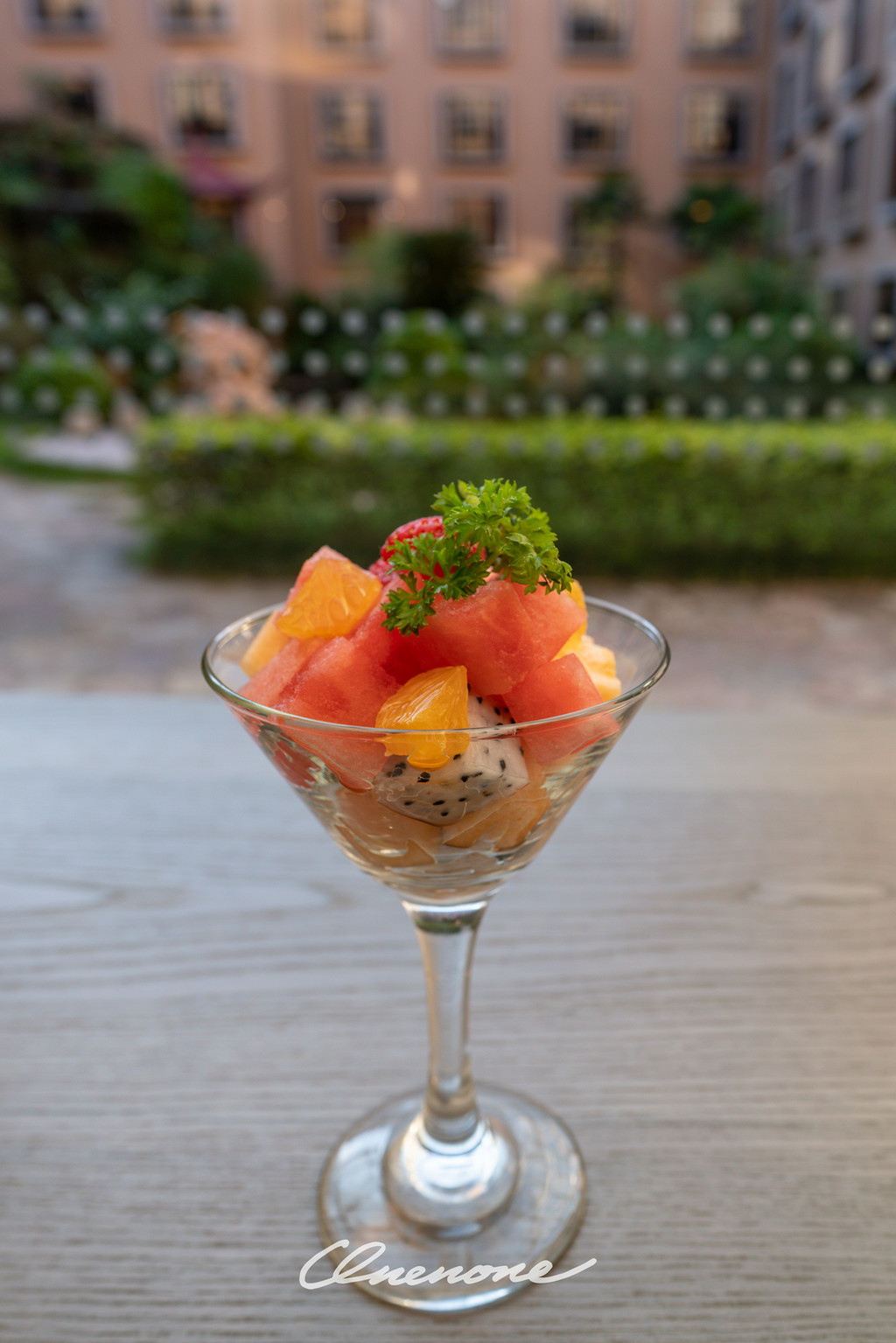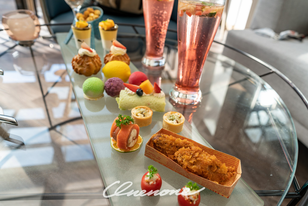 下午茶:如果只想宅在酒店,一定记得像我一样在1楼大堂吧享用一份双人下午茶,内容相当丰盛,包括:麦乐鸡中翅2个、番茄鲜虾塔2个、肉酱芝士塔壳2个、腌三文鱼芝士卷2个、爆米花1份、爆炸香草水果泡芙2个、芒果巴华莱斯杯2杯、蓝莓芝士蛋糕1个、抹茶帮格饼1个、柠檬蛋糕1个、草莓球1个、绿茶巴菲1个、缤纷水果杯1个、夏日甜心冰治2杯。混合果汁甜而不腻,甜品有型有味,肉质新鲜,炸物酥脆。