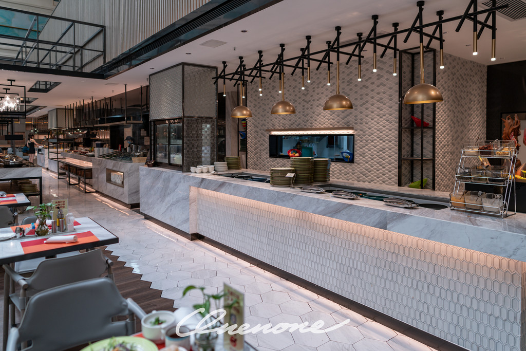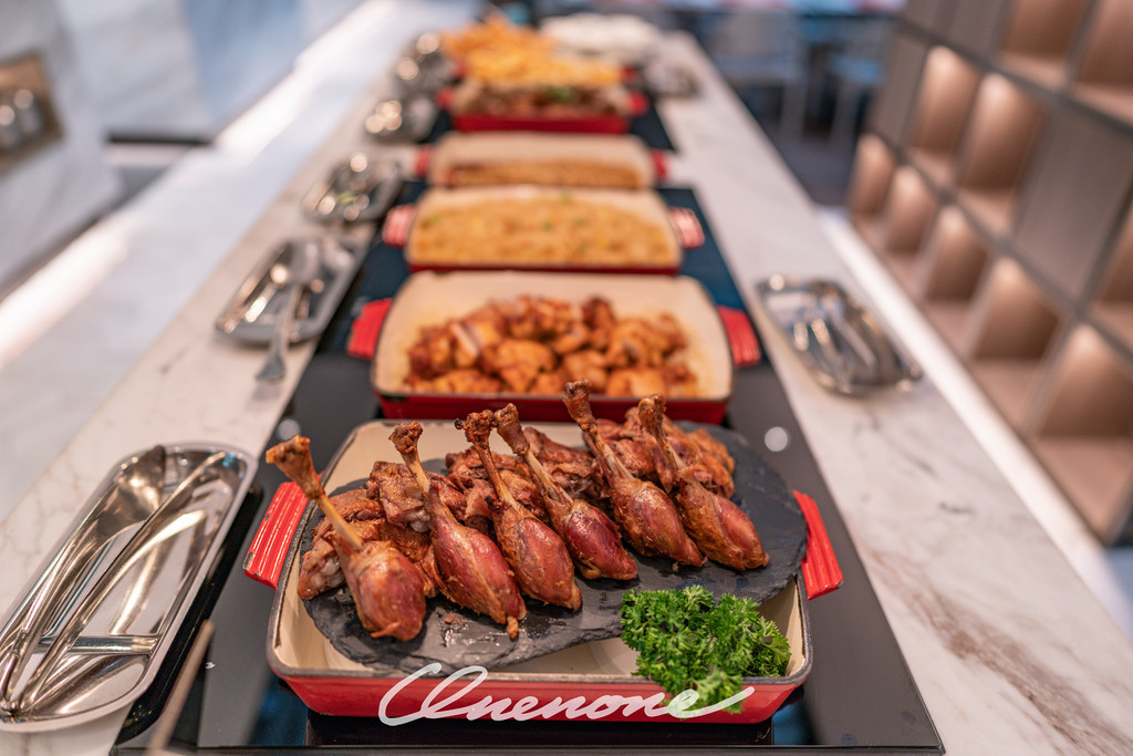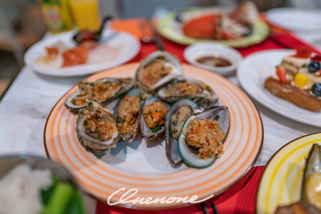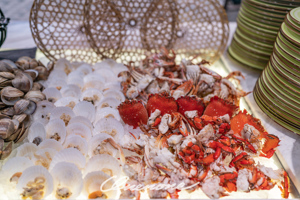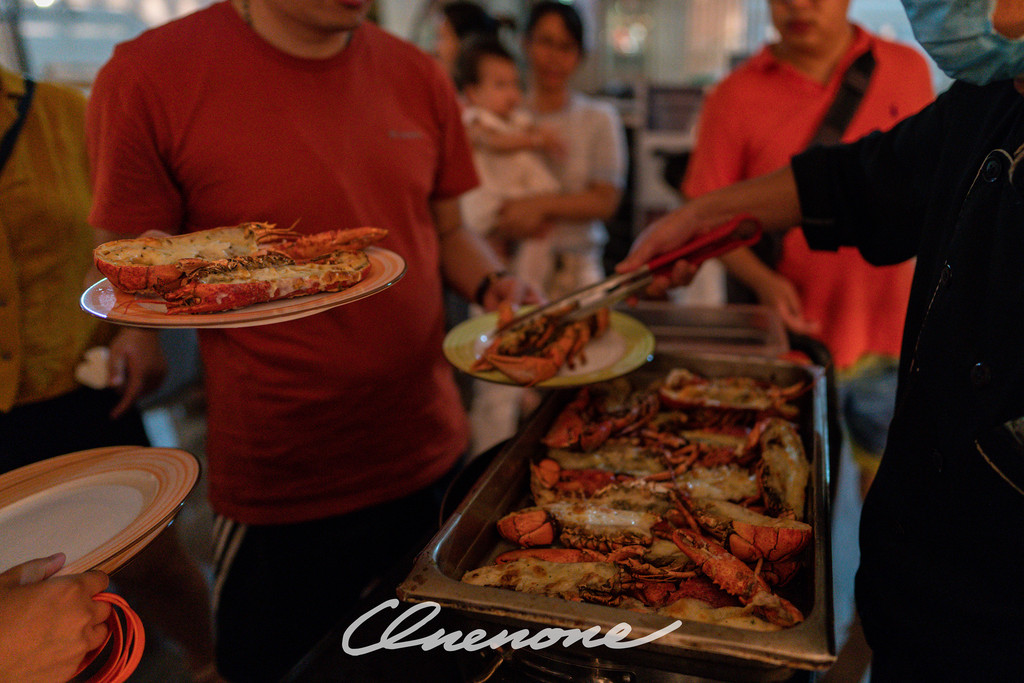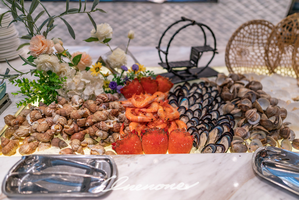 亲测的结论就是菜品确实够实在够用心,而且菜品也会根据每日当季食材轮换调整。海螺、贝类、明虾、三文鱼等海鲜刺身,牛排、羊排、生蚝、扇贝、鱿鱼、里脊肉、鸡翅、龙利鱼等烧烤烤物,花甲螺、青口螺、鱿鱼、明虾、螃蟹、手打牛肉丸等蒸煮热菜,盐焗鸡、烧鸭、叉烧、红肠等各地卤菜,白果老鸭汤、清炖甲鱼汤等炖品汤盅,还有送到座位前的现切牛舌、五花肉,好吃的实在太多,甚至还有冰淇淋球和每晚保留节目的人手一只芝士焗波士顿龙虾派送。