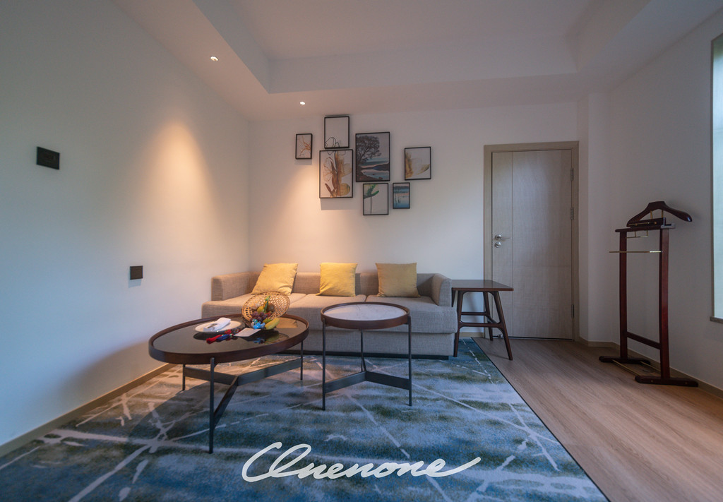 客房休息区域单人沙发和躺椅脚踏的跳色配色,和几幅墙壁艺术画的选配,不仅使得温馨素雅的客房整体风格,增添了一丝灵动,更让客房多了一处可以拍摄室内人像照片的独立空间。客厅茶几选用的是现代流行的简约风格,不仅置物功能突出,也可用于静物摄影。