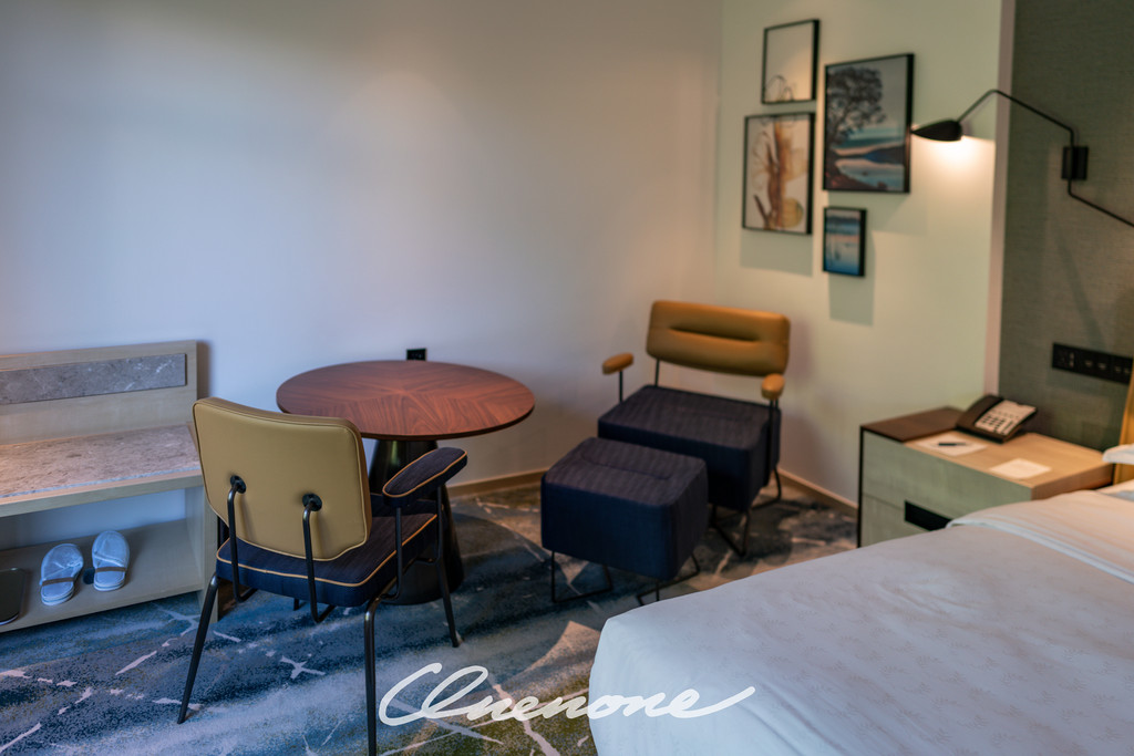 装修风格:酒店地处桂林市中心区域,坐拥翠绿山峦和秀美漓江,作为老牌的国际连锁品牌五星级酒店,酒店的主体建筑早已与周边葱郁的绿植和绵延的山水融为一体,内部焕然一新的公共空间和客房装修融入淡雅的桂林山水元素,既拥有轻奢雅致的现代风格,又不失水墨丹青的传统意境。