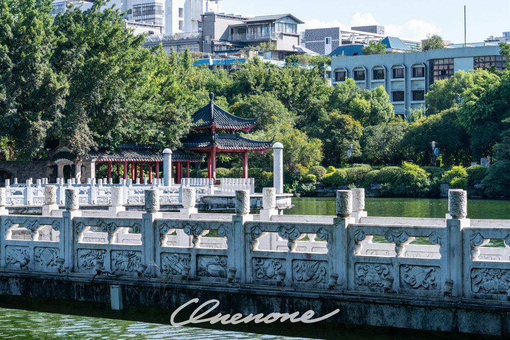 酒店乘车8分钟可达,湖的上方有木龙洞,所以称木龙湖。其参照《清明上河图》等宋朝时期建筑改建,是两江四湖中建筑别具一格的一段湖面。