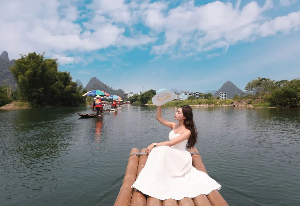 在竹筏上,静静感受遇龙河的流淌,这就是一份属于画中仙境的美好。阳朔遇龙河是一卷画轴,两岸山峦千姿百态,河畔翠竹叠嶂,遇龙河河水清澈见底,坐上竹筏游览遇龙河,竹排过坝,惊险刺激;荡舟平湖,轻松愉悦。