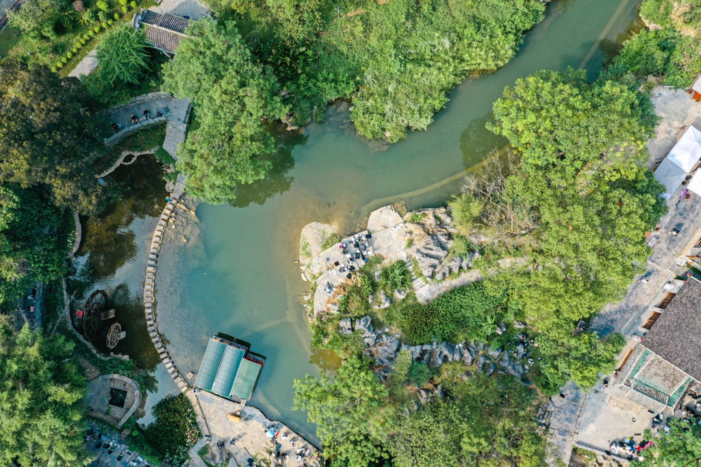 黄瑶古镇被护城河环绕,这正是古镇最传统的布局。这条护城河,河水清澈,数百年的流淌,把两岸的石头冲刷出奇特的形状。