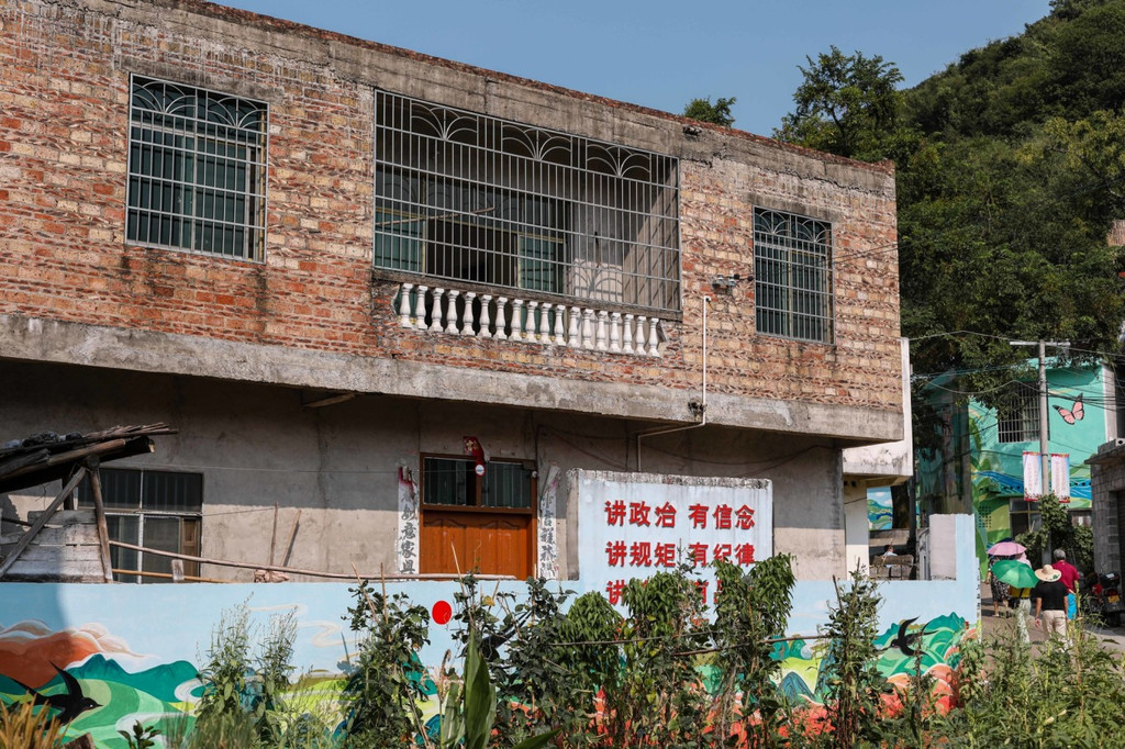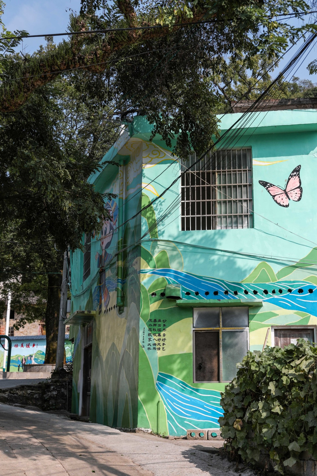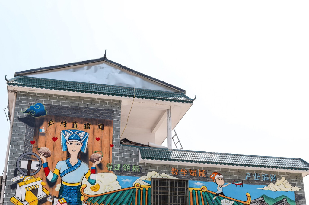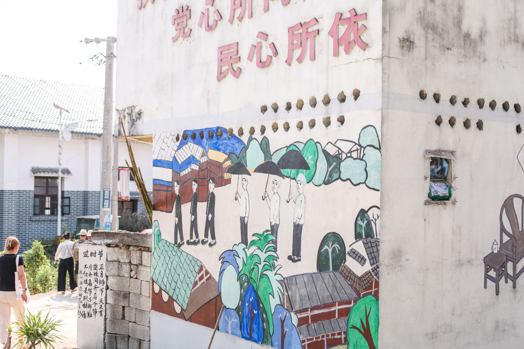 来到 黑山 村,这里的建筑墙上画了不少的彩绘,有色彩缤纷的蝴蝶,也有属于这里的民族特色。