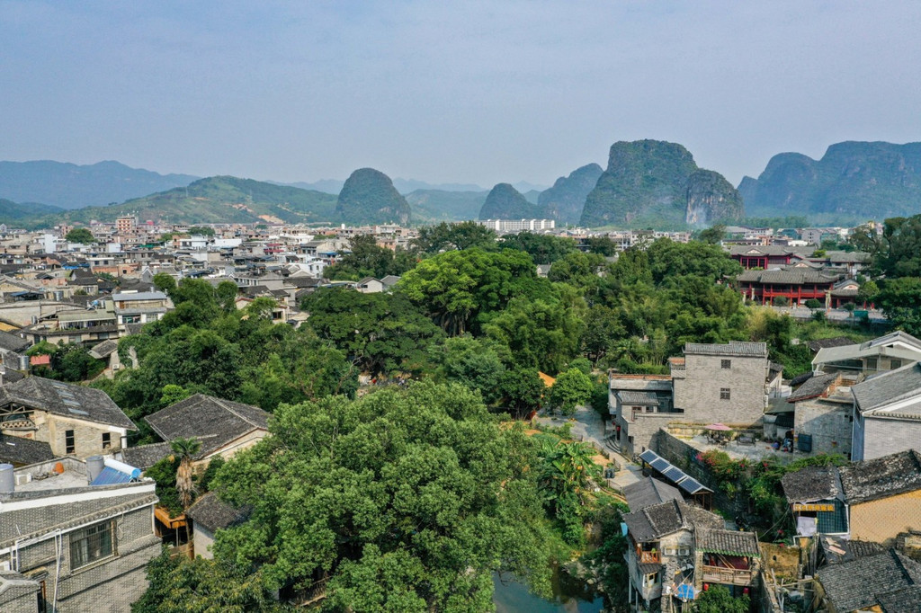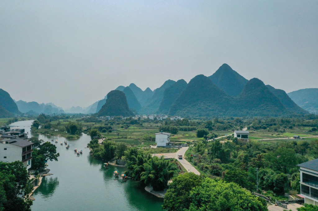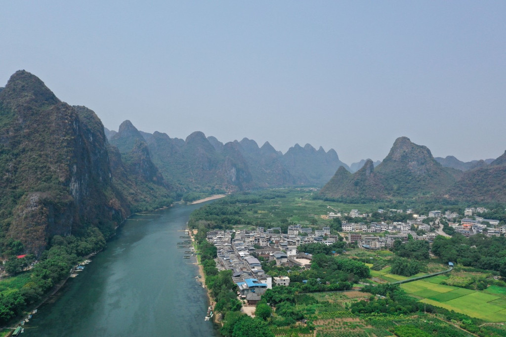 在冠岩附近走走,还能看到秀丽的 桂林 山水,看山峦,看村落,看在漓江上静静行驶的游船,都如画美好。