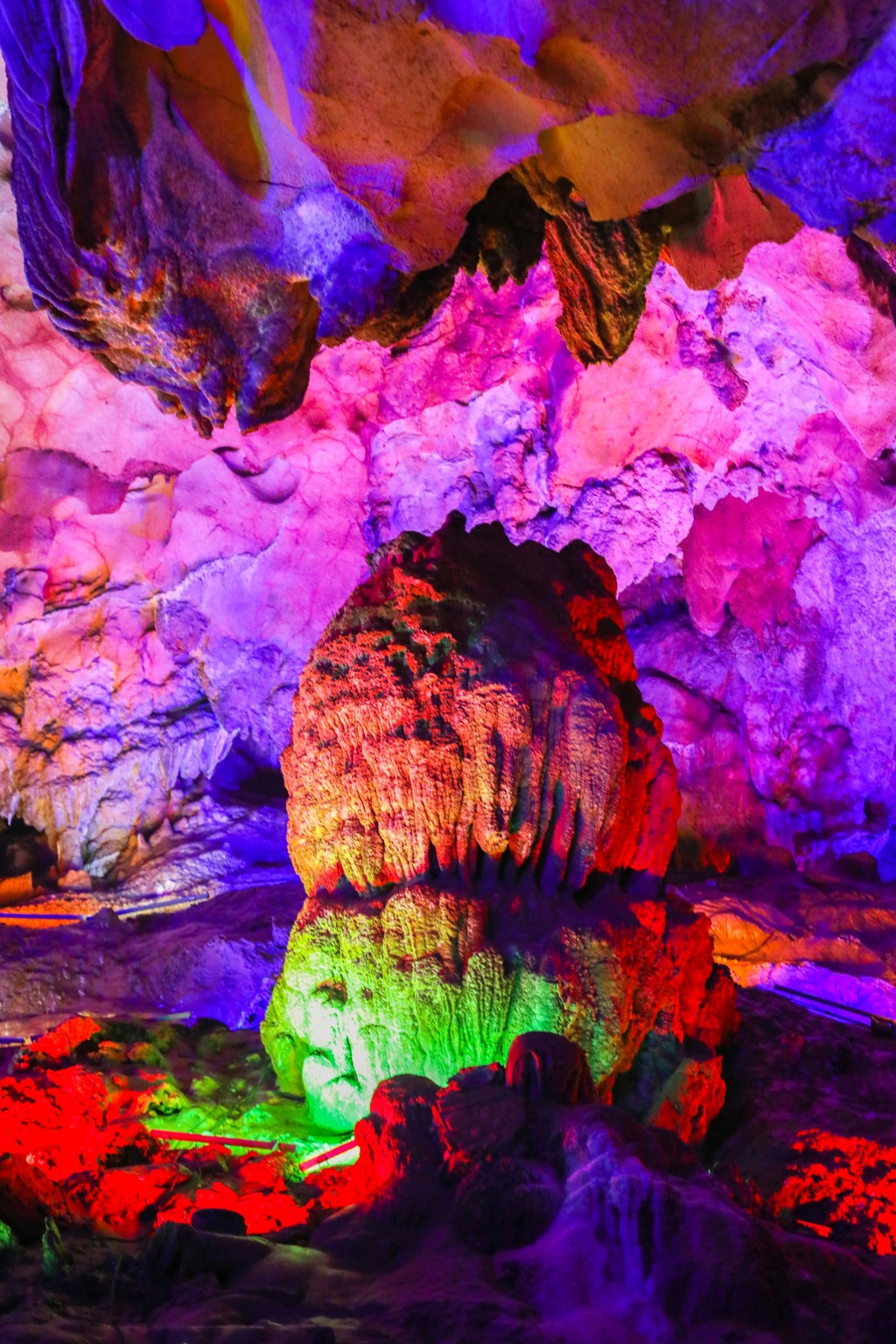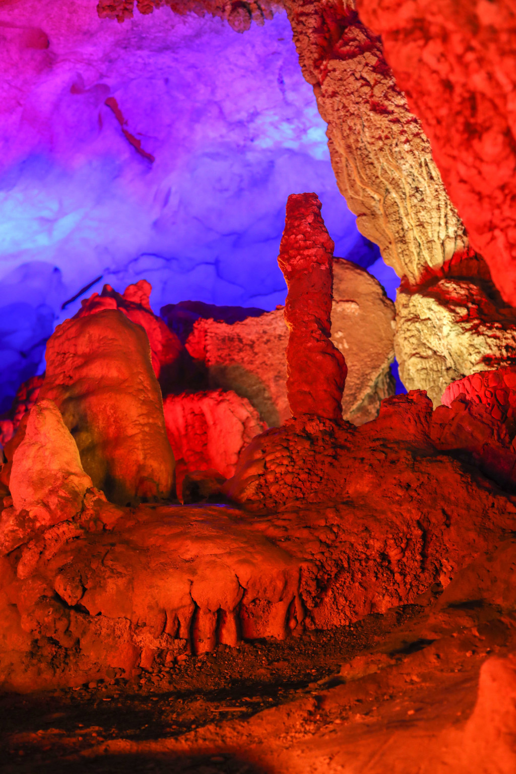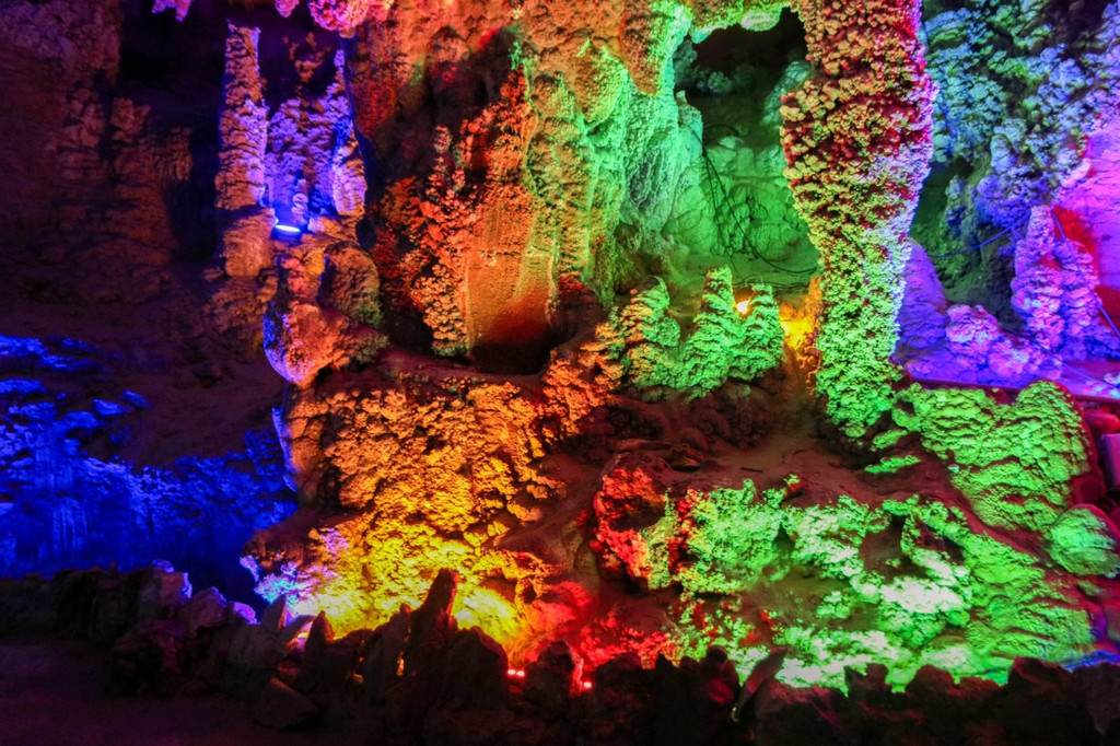 溶洞中,经历大自然亿万年的打造,在这里能看到各种造型奇特的钟乳石。加上绚丽的灯光,更给钟乳石带来了特别的魅力。