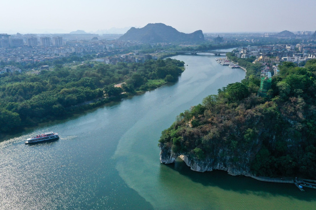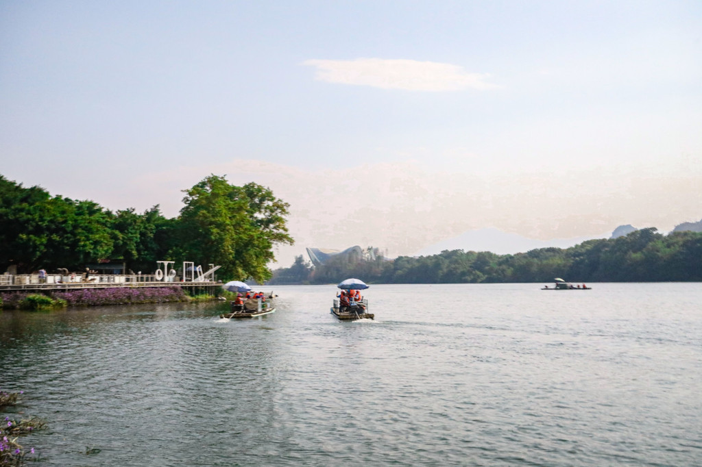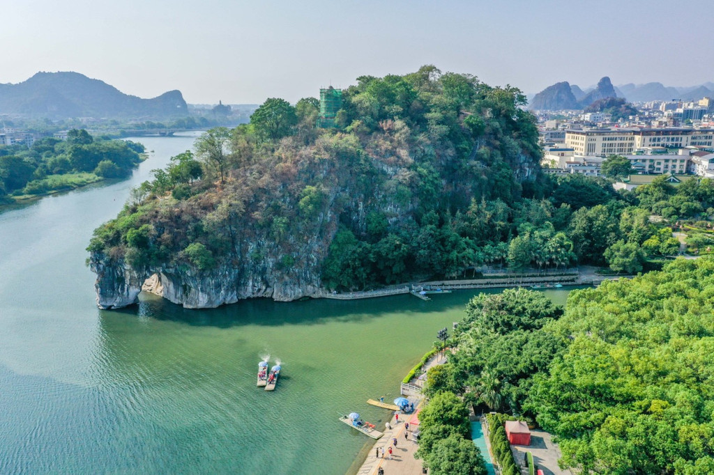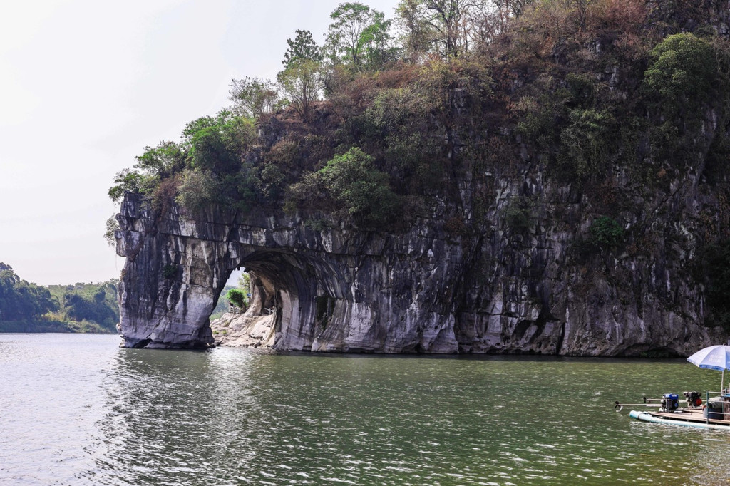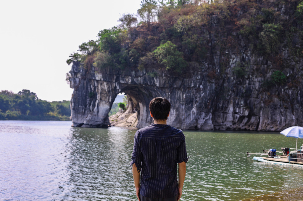 在象鼻山山脚,还能看到清秀的桃花江。坐上游船或是竹筏,在江上观赏象鼻山的美景,也是非常有趣的一种体验。