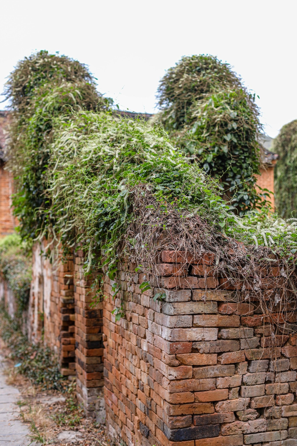 镇中仍旧保持了古镇本来的面貌。斑驳的砖墙,灰白的瓦顶,都充满着历史的厚重感。在走在其中,无论是墙角的小草,亦或是墙上的爬山虎,都给历史的厚重感带来了鲜活的气息。