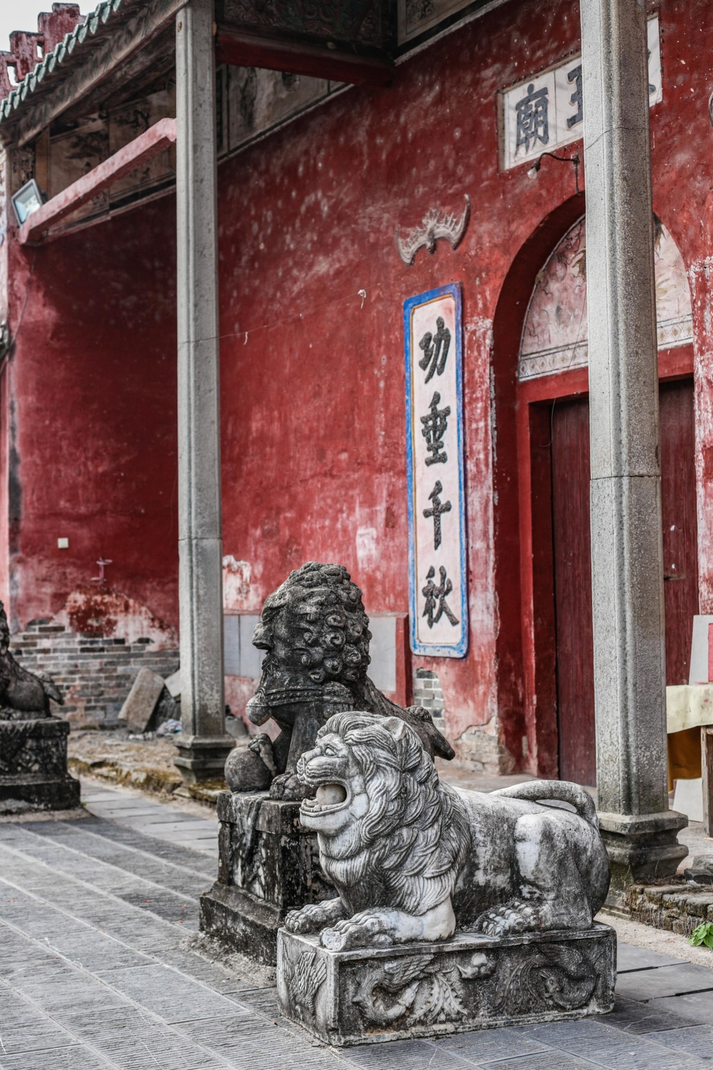 城墙下的陈王庙如今已经破败,但香火仍旧鼎盛。斑驳的红墙似乎在无声地叙述着当年的辉煌,门前的 石狮 子似乎保养颇为不错,虽然同样能看出岁月的痕迹,但却威武无比。
