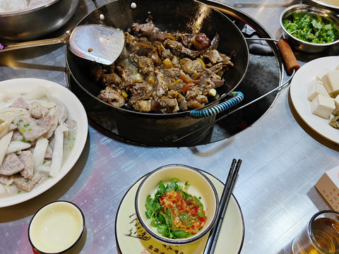 回民宿的路上,天色已晚。在街上遇到一家狗肉店!看到生意很火,决定尝试一下。