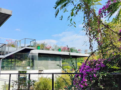 第二天睡到自然醒,起床后到楼下看花看草。民宿一楼的草坪搭有天幕,不用自己动手,也不用去远郊。