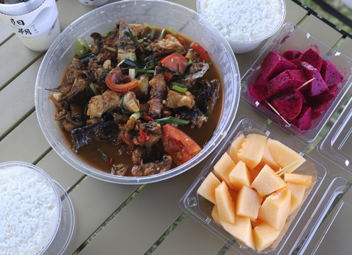 来阳朔当然不能错过啤酒鱼!大街上到处都是大师傅啤酒鱼,我们当然要避开这种网红店。前一天向滴滴师傅打听到一家本地人经常去吃的店,悄咪咪地记下了