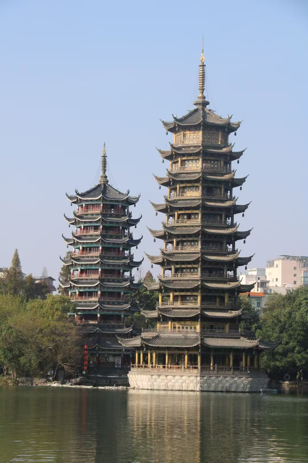 上午游日月双塔、象鼻山,下午游靖江王城 ,晚上逛东西巷。继续住桂林市区柏曼酒店。